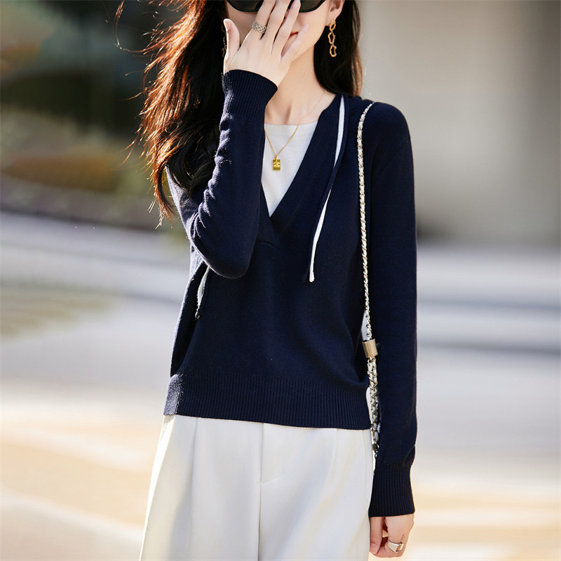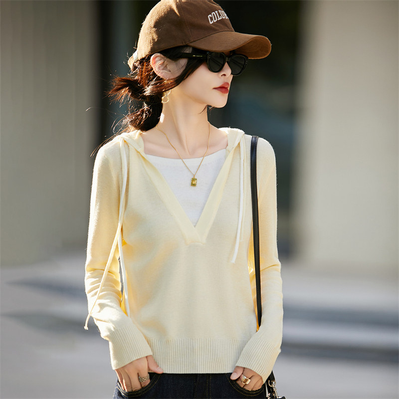 2025羊绒连帽撞色假两件百搭时尚