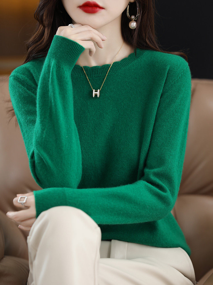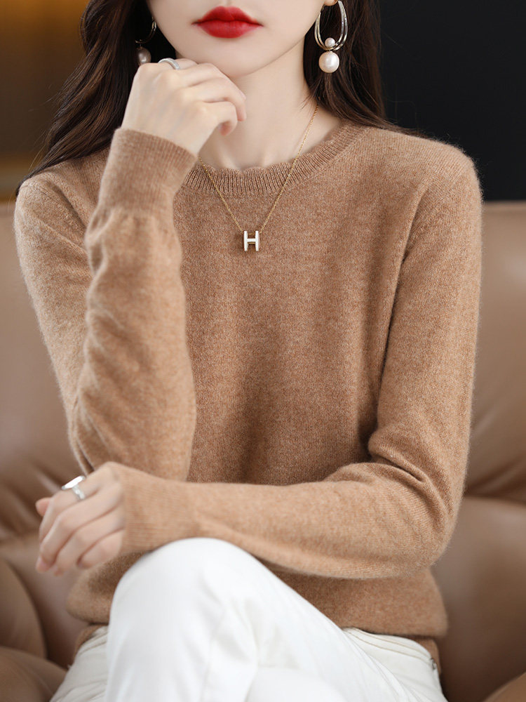 圆领长袖羊毛针织衫女洋气套头毛衣秋冬新款宽松外穿气质打底衫