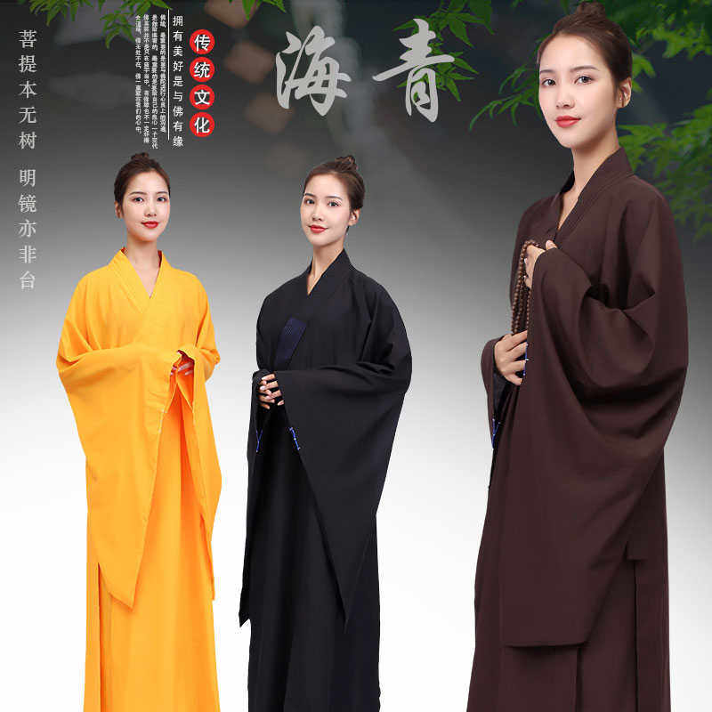 海青居士服女士春夏秋冬季僧衣僧服海清大褂禅修服袈裟咖啡色黑色