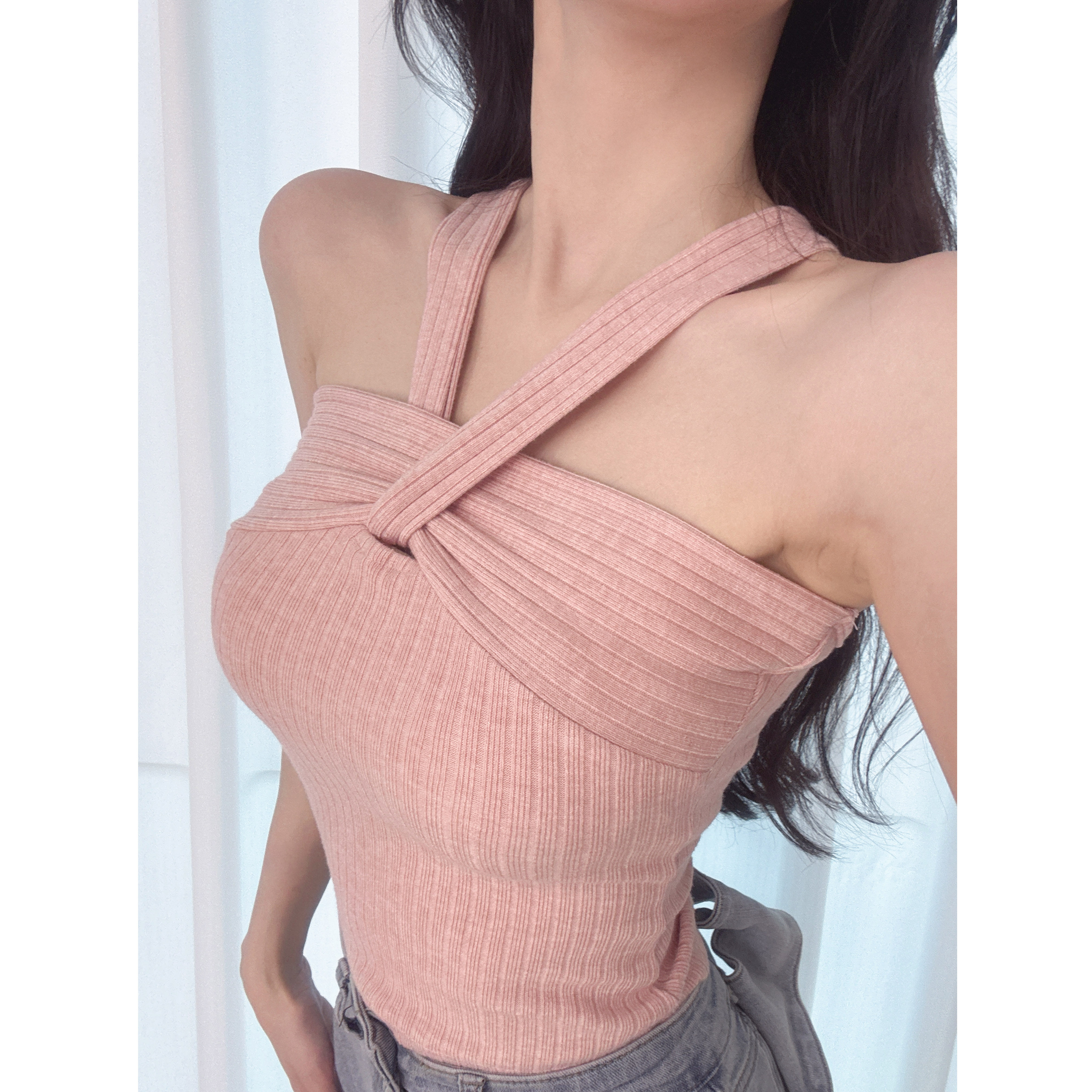 纯欲风吊带褶皱背心短款复古背心夏季打底紧身性感风辣妹针织