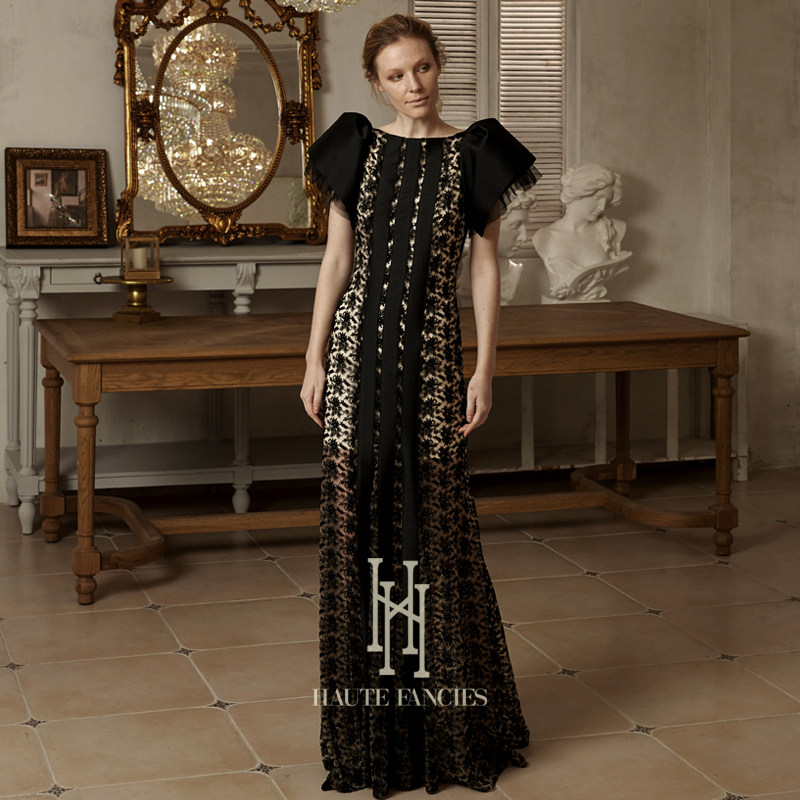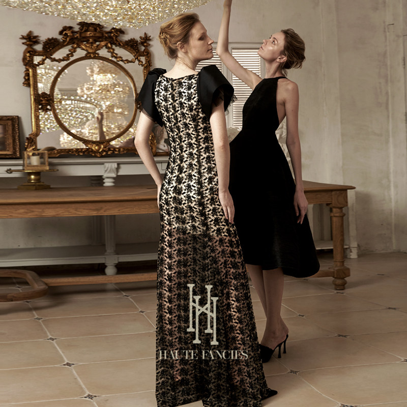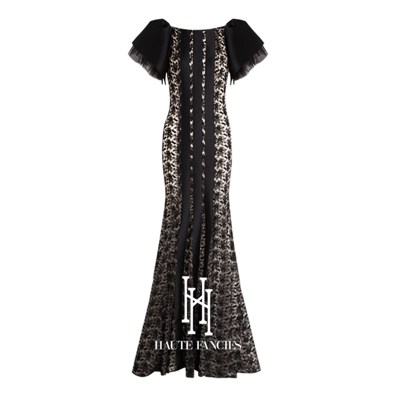 高定玫瑰袖 HAUTE FANCIES后构想|黑色法式立裁玫瑰袖鱼尾礼服裙