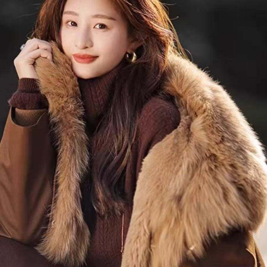 冬可拆卸派克服外套女冬季新款加绒加厚皮草外套爆款洋气冬天装