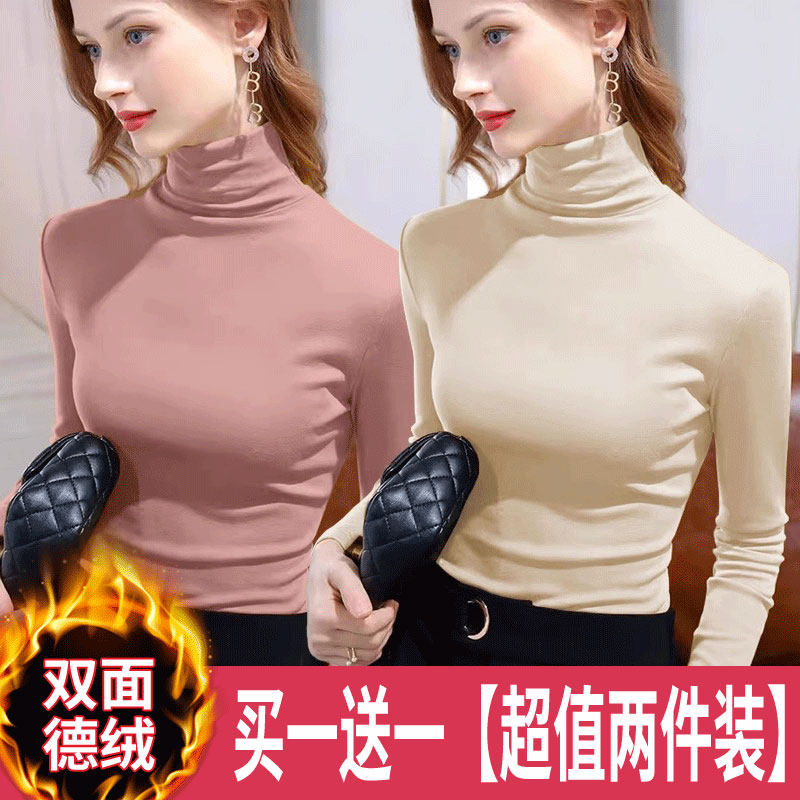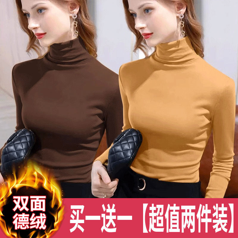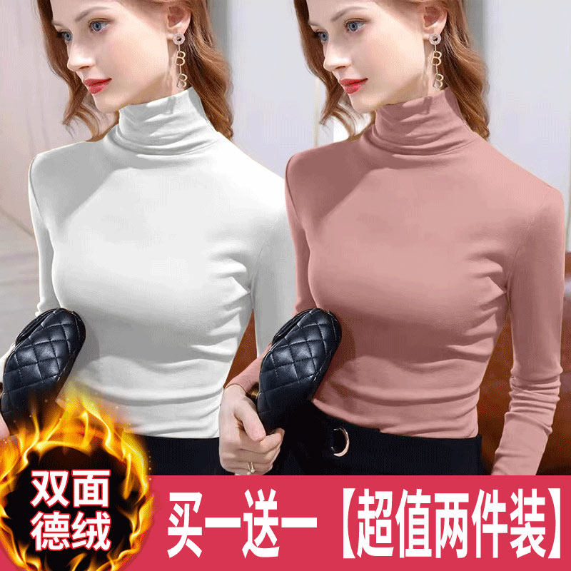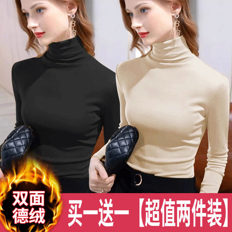 双面德绒打底衫女秋冬新款黑色磨毛保暖长袖t恤加厚加绒内搭上衣