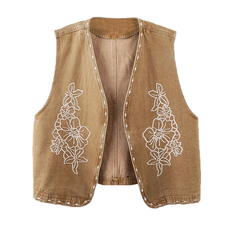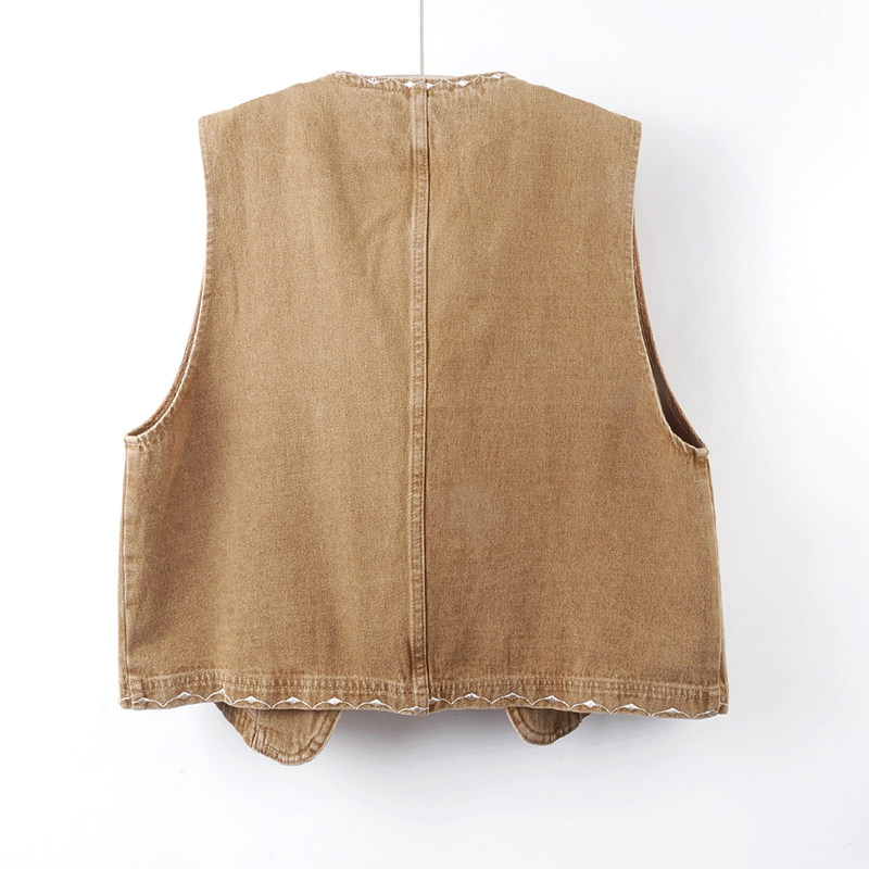2025春秋新款波西米亚风刺绣牛仔马甲女短款宽松外搭坎肩背心上衣