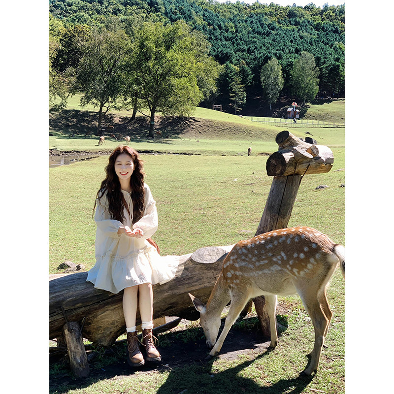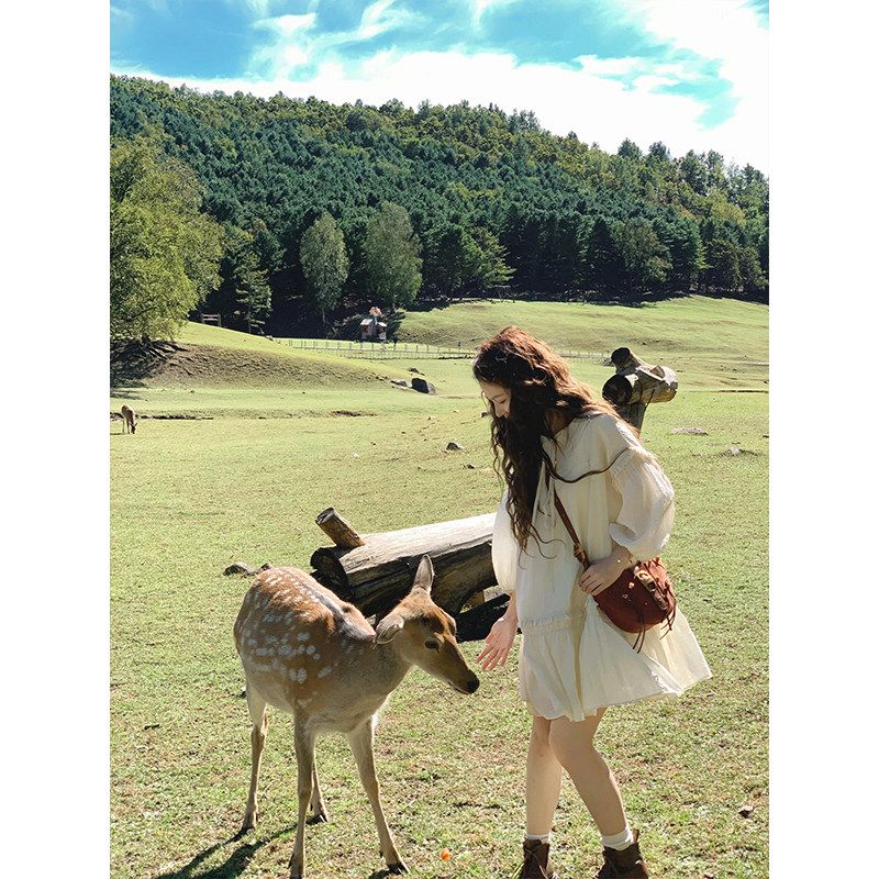 波西米亚短裙女春夏新款小个子法式气质收腰显瘦泡泡袖仙女连衣裙