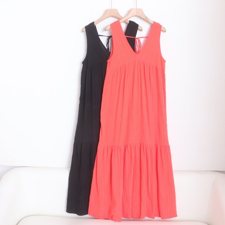首页> 女装> D160124日单新款客供料V领系带微宽松A字女无袖气质长款连衣裙