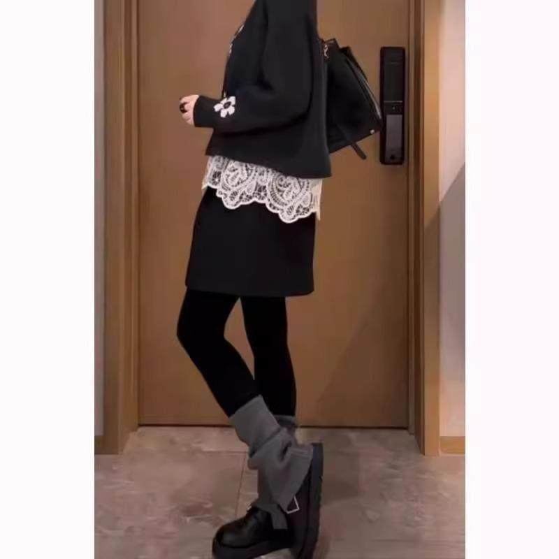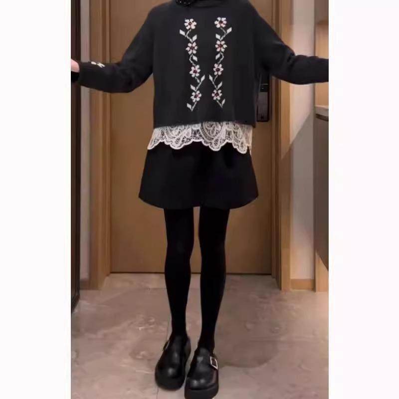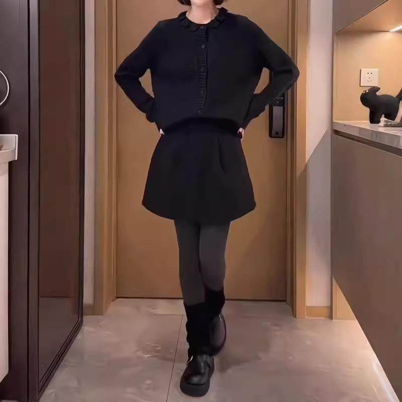 黑色简约毛呢半身裙女秋季新款大码高腰梨形身材显瘦a字花苞短裙