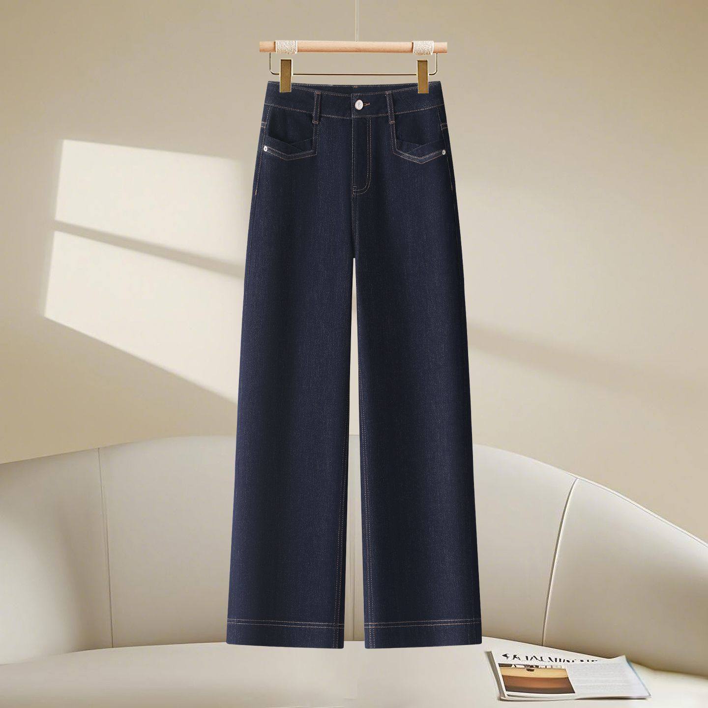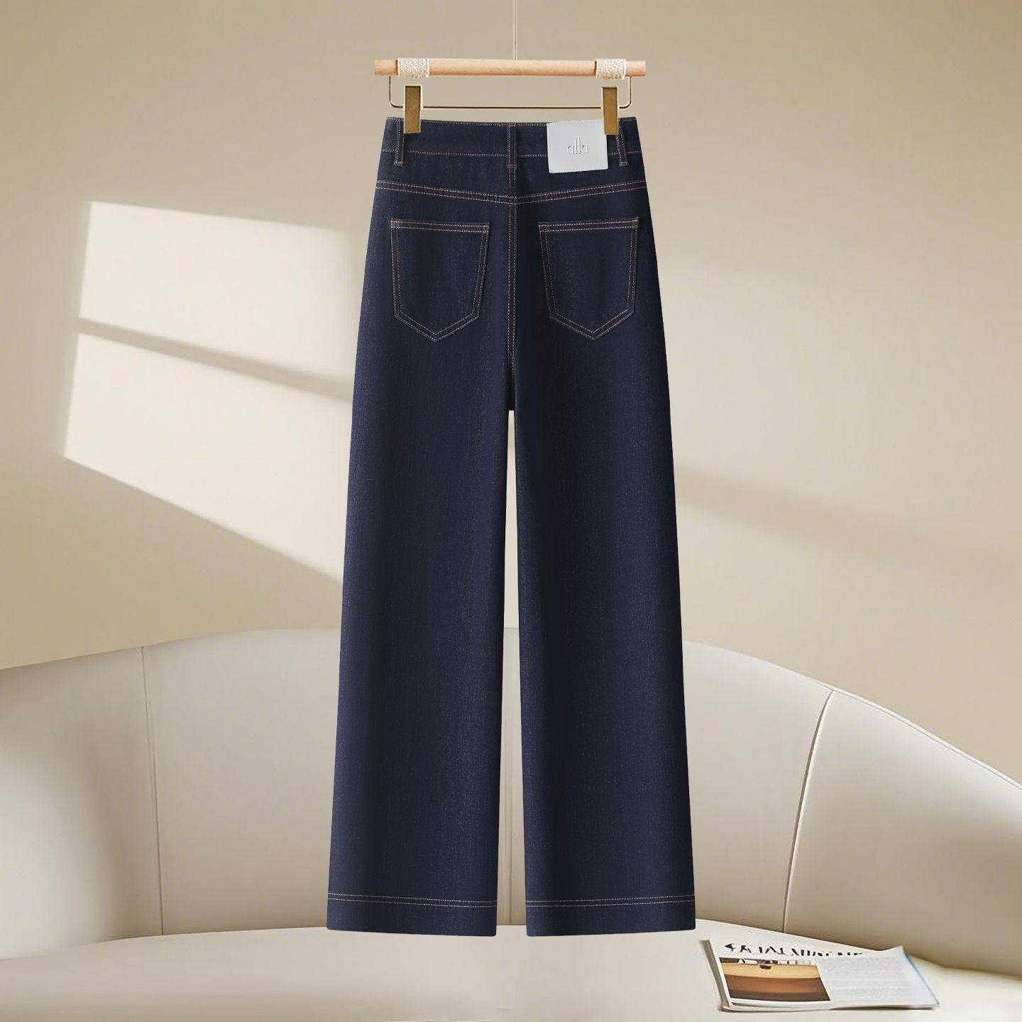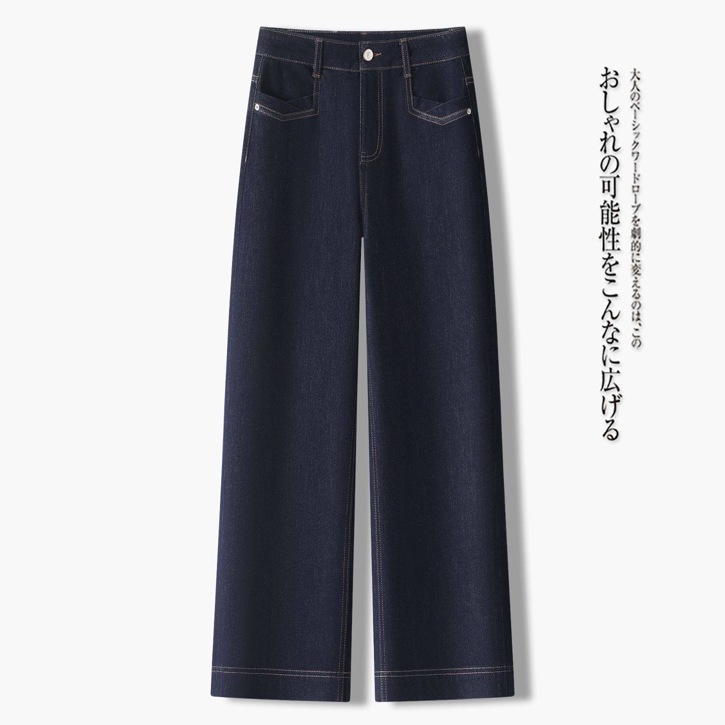 时尚窄版阔腿牛仔裤女2026春秋新款宽松显瘦百搭弹力直筒休闲裤子