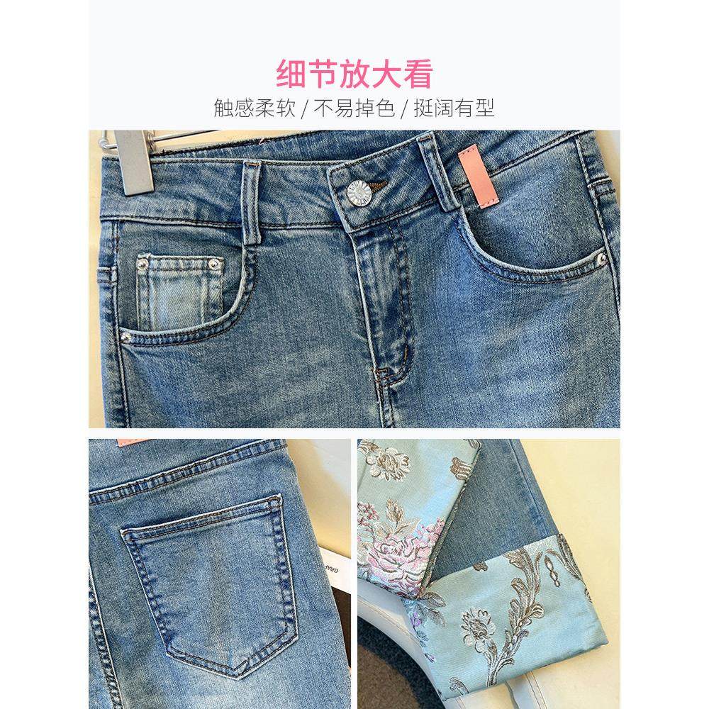 首页> 女装> 高档垂顺柔软新中式盘扣烟管牛仔裤女爆款春秋刺绣小个九分直筒裤