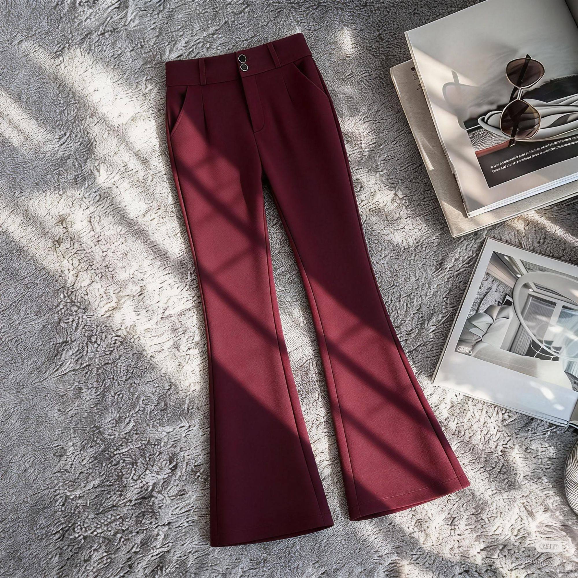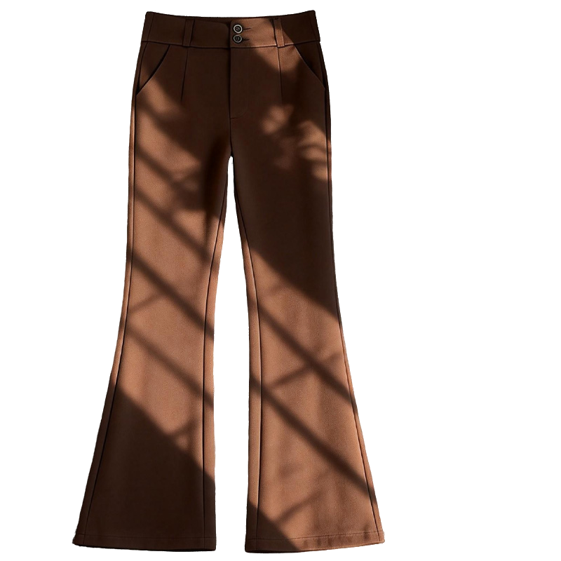 啄木鸟休闲裤九分宽松修身咖啡色窄版加绒高腰秋冬微喇裤