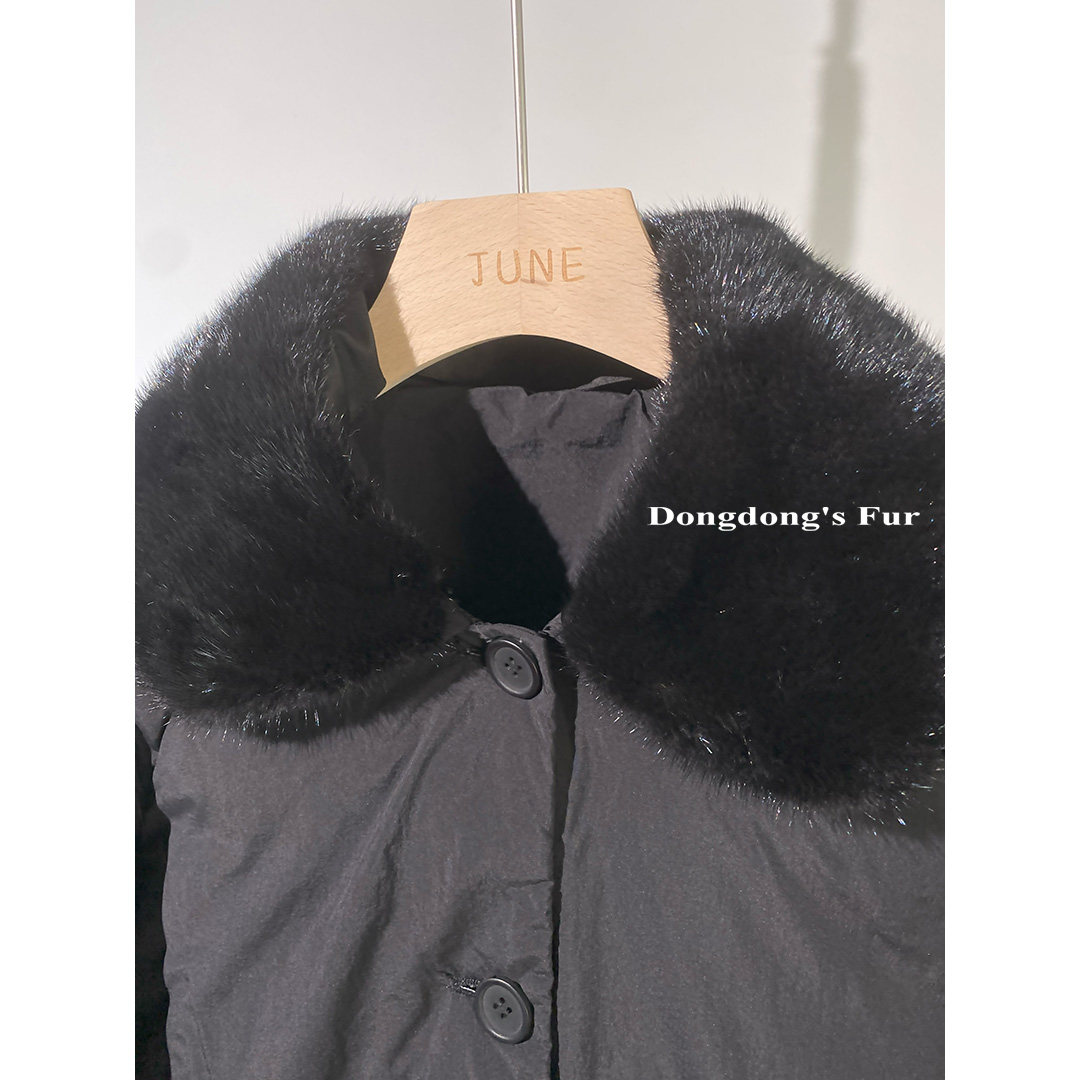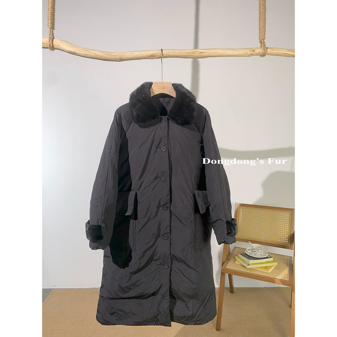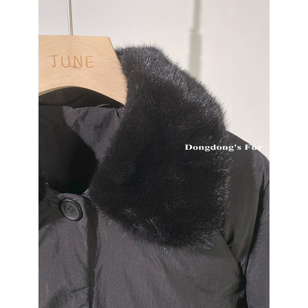韩版鹅绒黑色长款羽绒服女毛领保暖外套高级感时髦