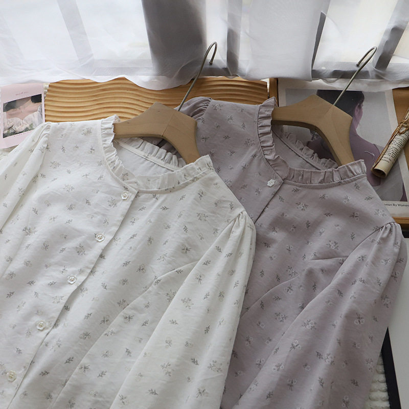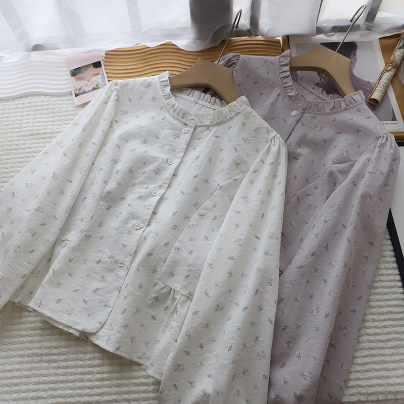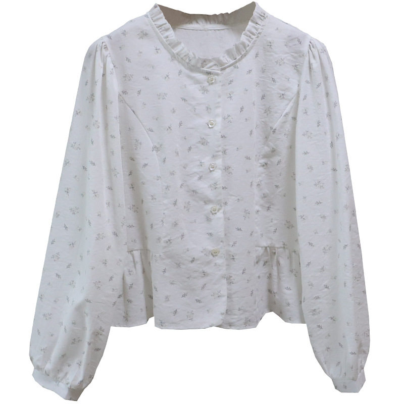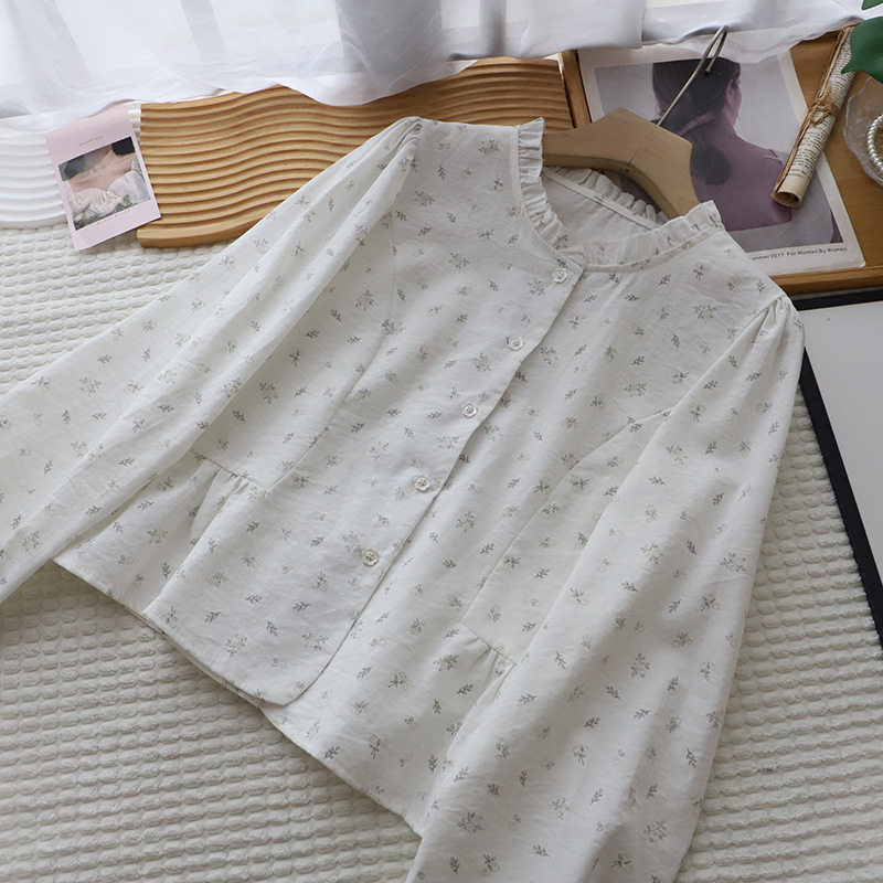 首页> 女装> [比正]2026春季新品韩系木耳领碎花减龄显瘦短款长袖衬衫女6021