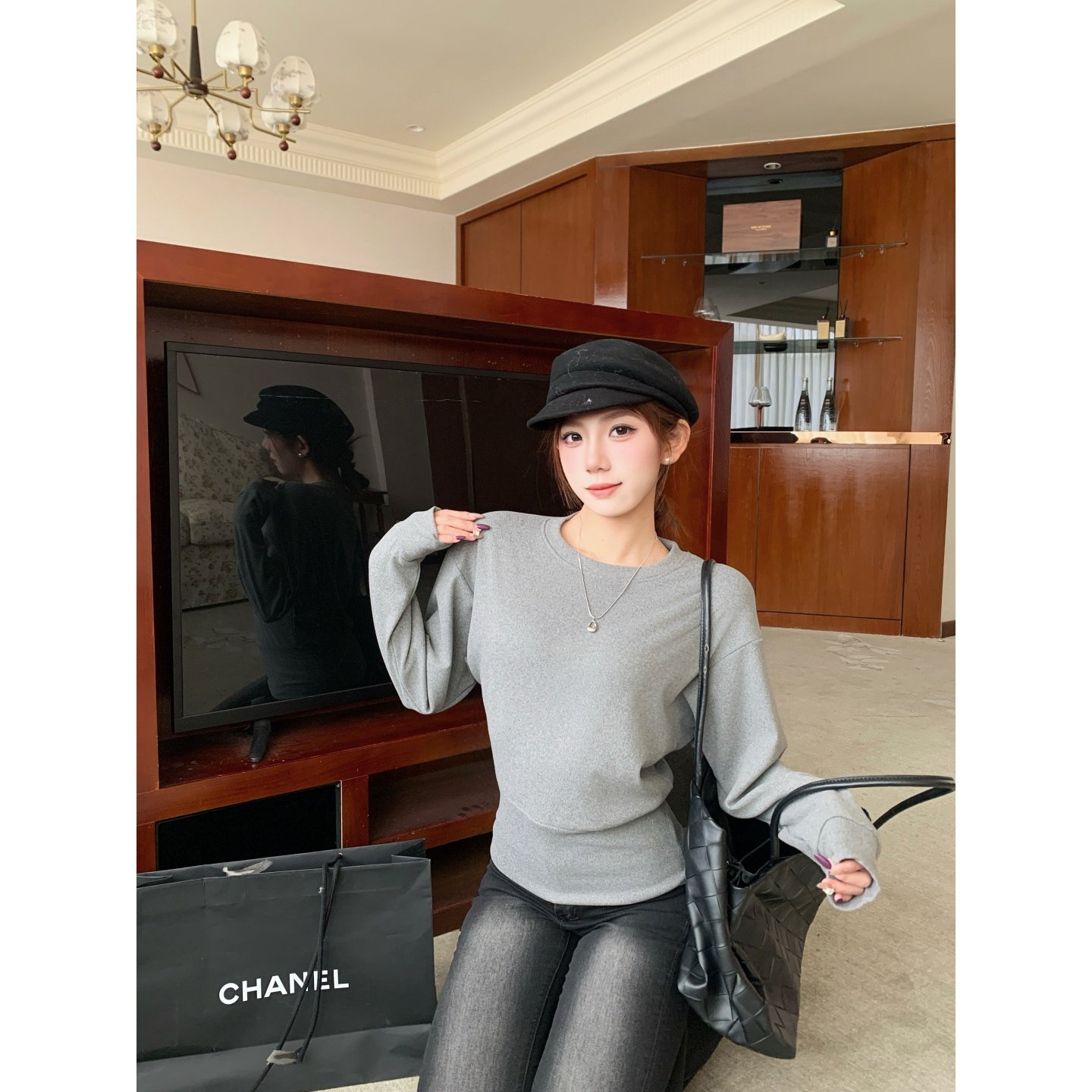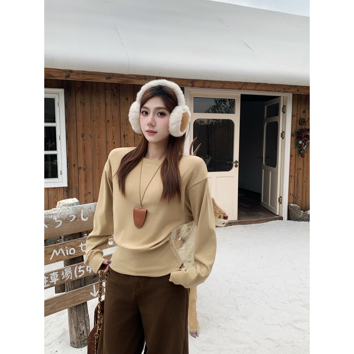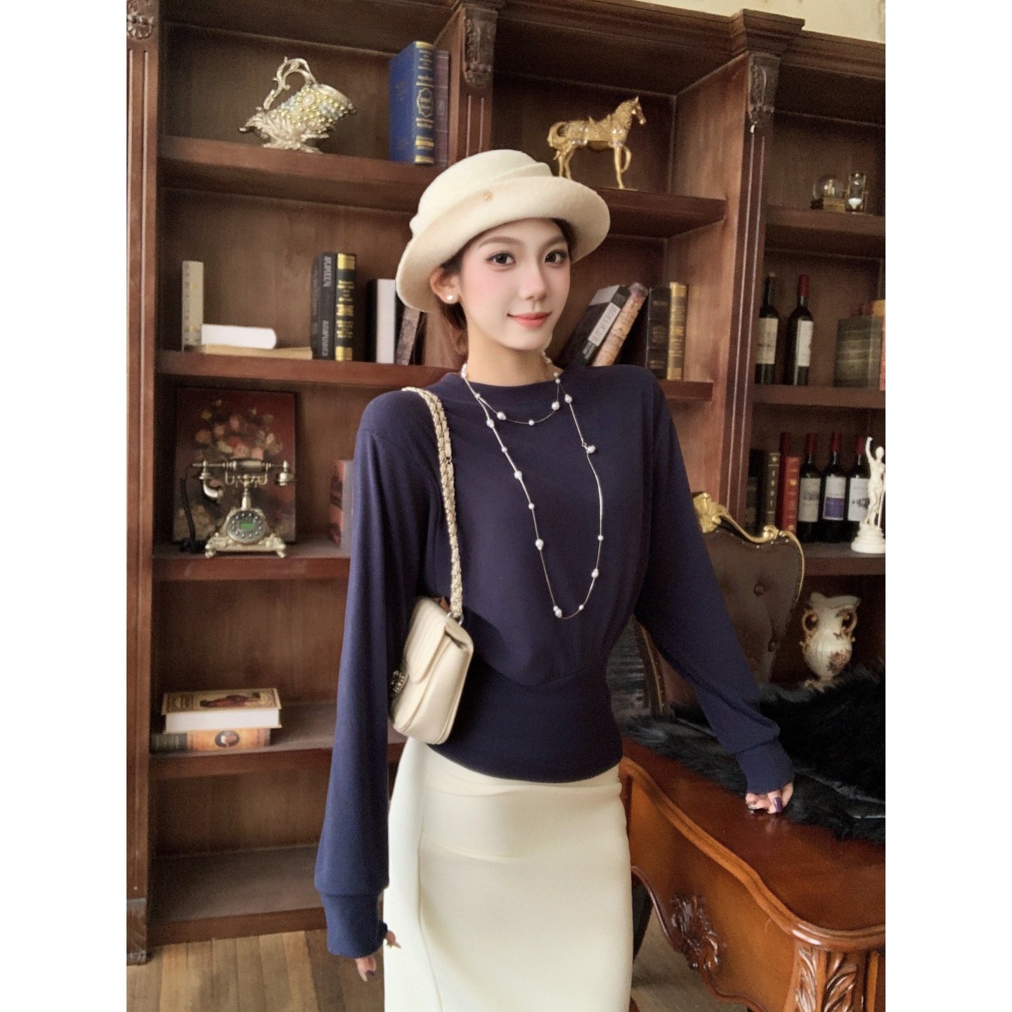 首页> 女装> 铅笔莓莓 韩系纯色圆领加绒加厚长袖T恤女秋冬收腰设计感百搭上衣