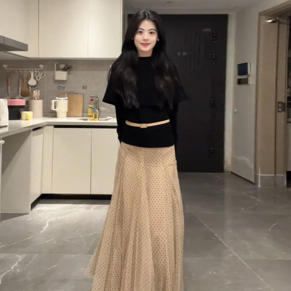 法式高级感波点连衣裙子女冬季2026年新款巨好看冬装两件套装