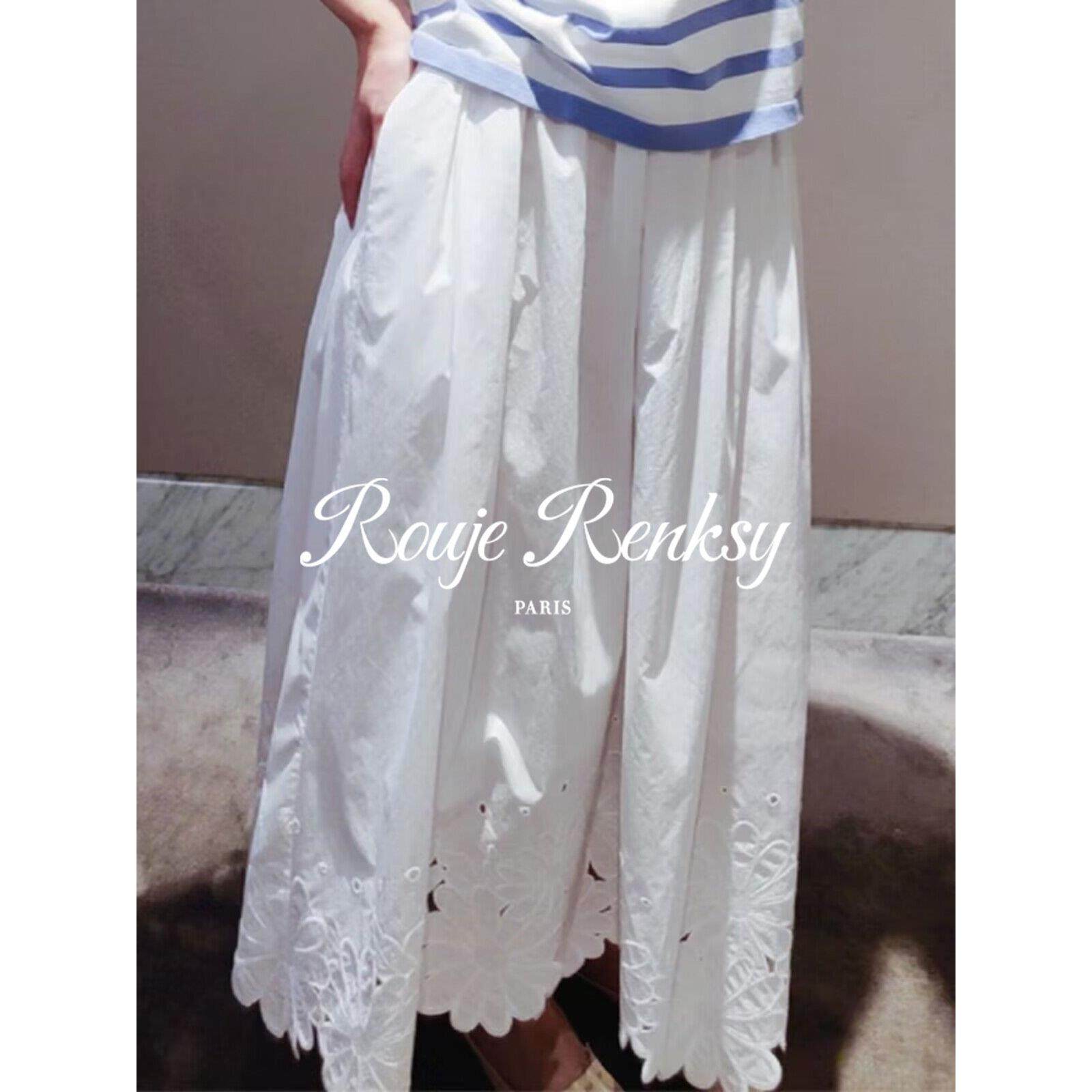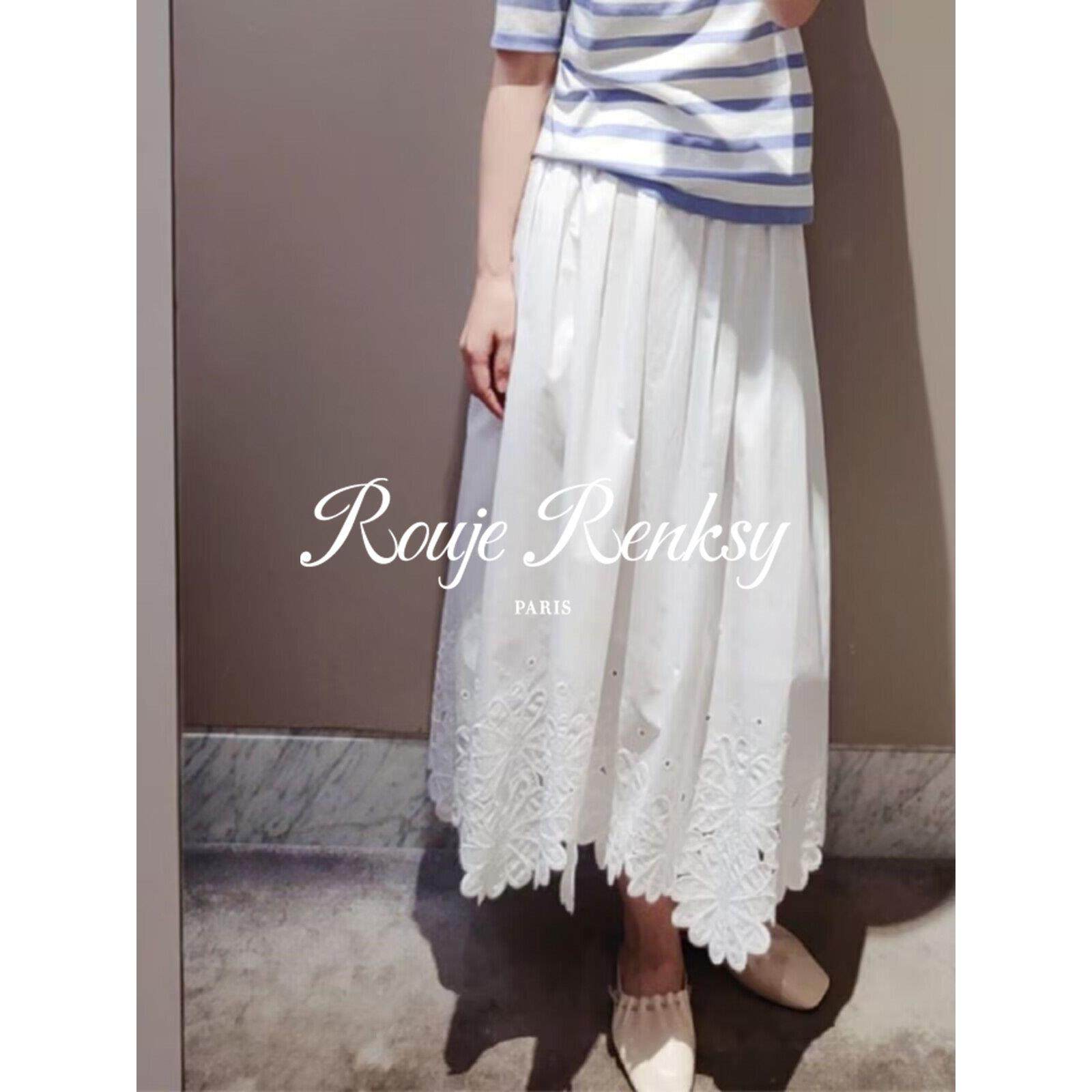 法国Rouje Renksy法式百搭蕾丝镂空拼接设计感松紧高腰半身裙女春