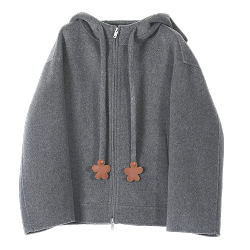 【小敏阿姨】小花扣连帽大衣外套YT241105