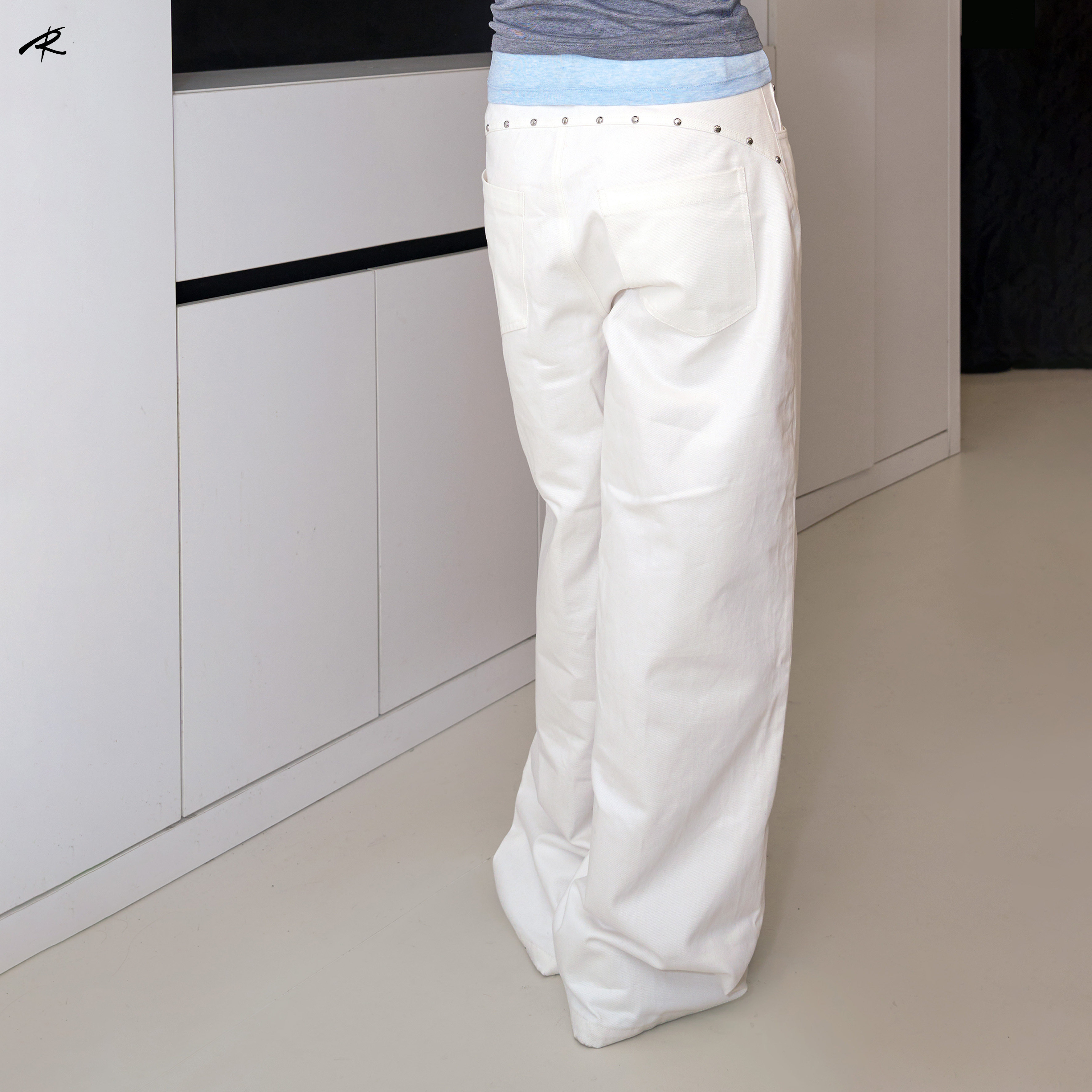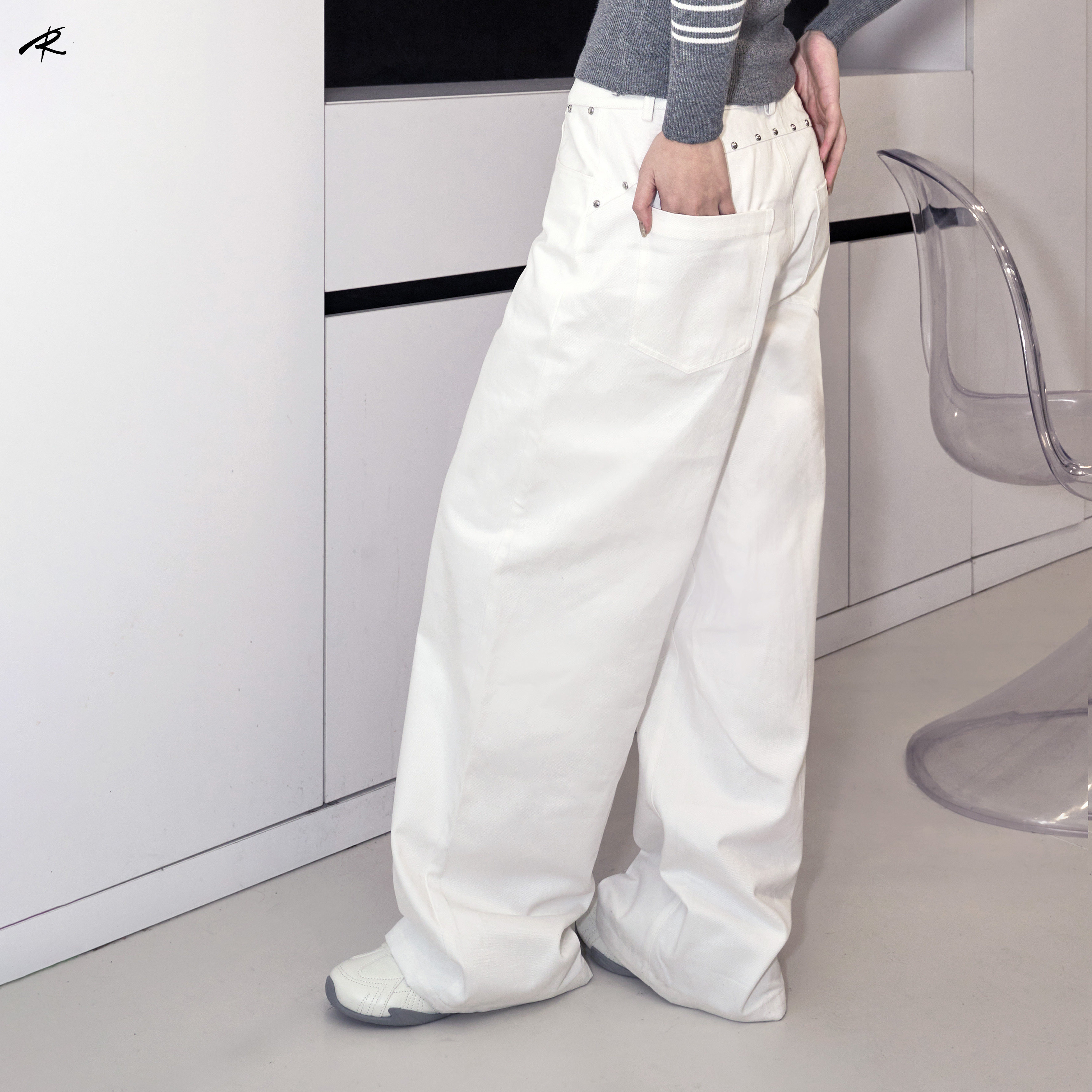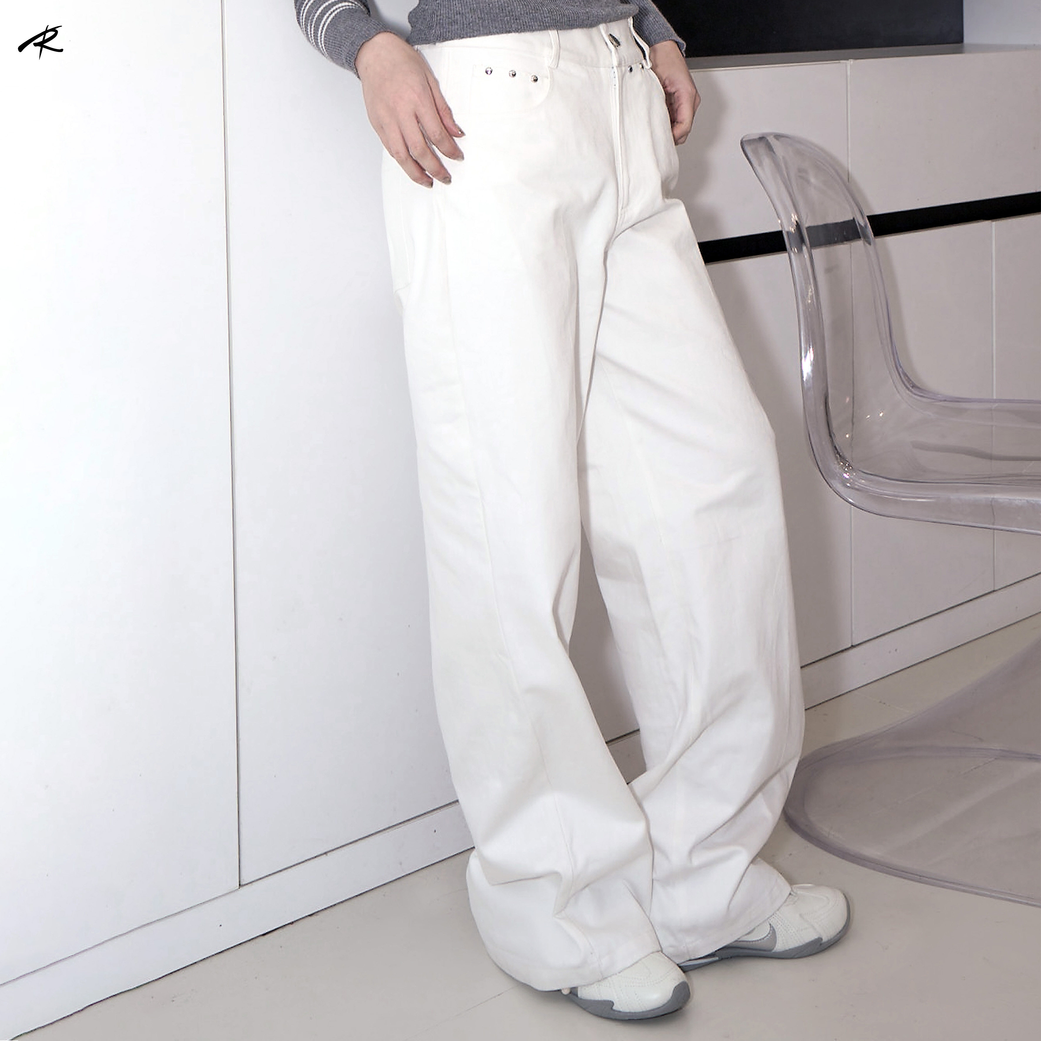 RIP THE TIE 原创设计铆钉白色直筒休闲裤百搭显腿长高级通勤长裤