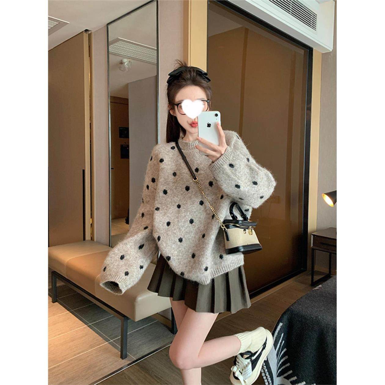 灰色波点套头毛衣女秋季加厚宽松休闲港味覆古小个子内搭针织衫