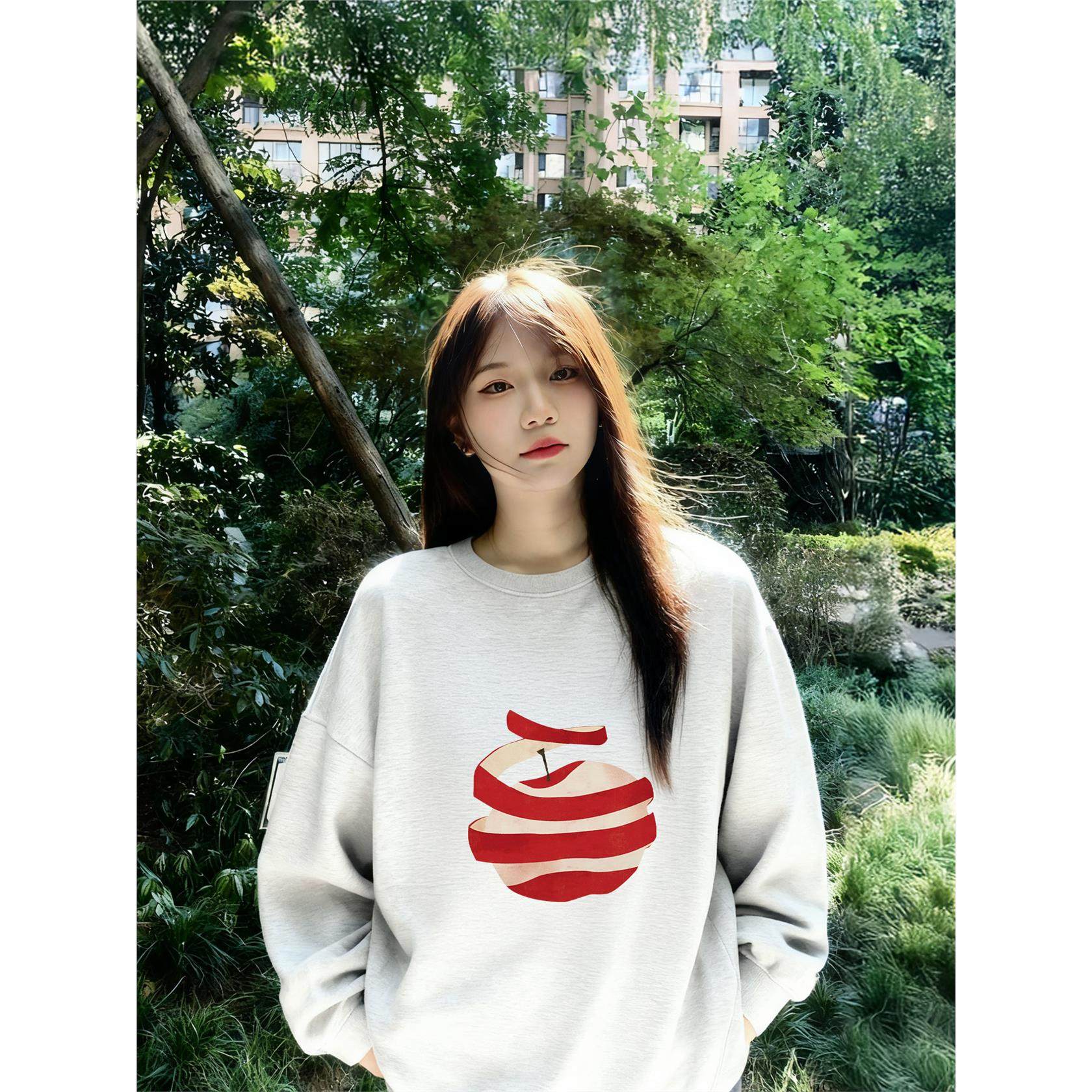白灰色圆领卫衣女无帽2025新款爆款秋冬加绒加厚长袖早秋宽松上衣