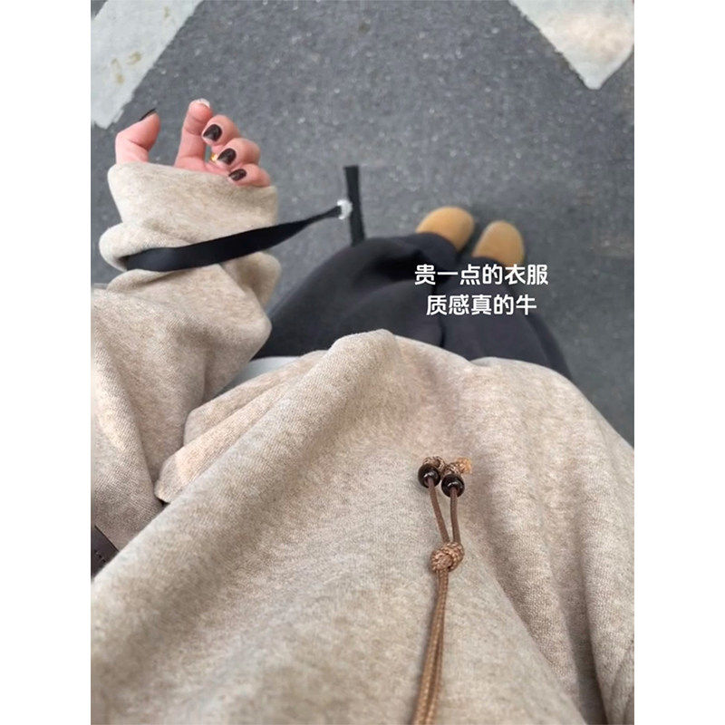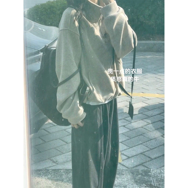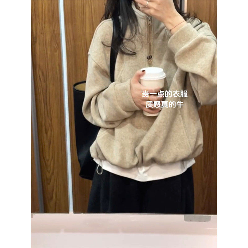半拉链立领卫衣女秋冬加绒加厚美式复古高级感慵懒风无帽上衣宽松