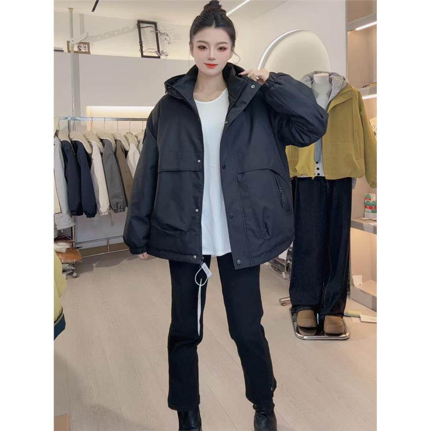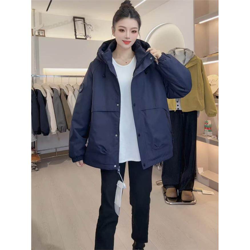 连帽冲锋衣加绒加厚棉服外套女2025冬季新款宽松显瘦百搭保暖上衣