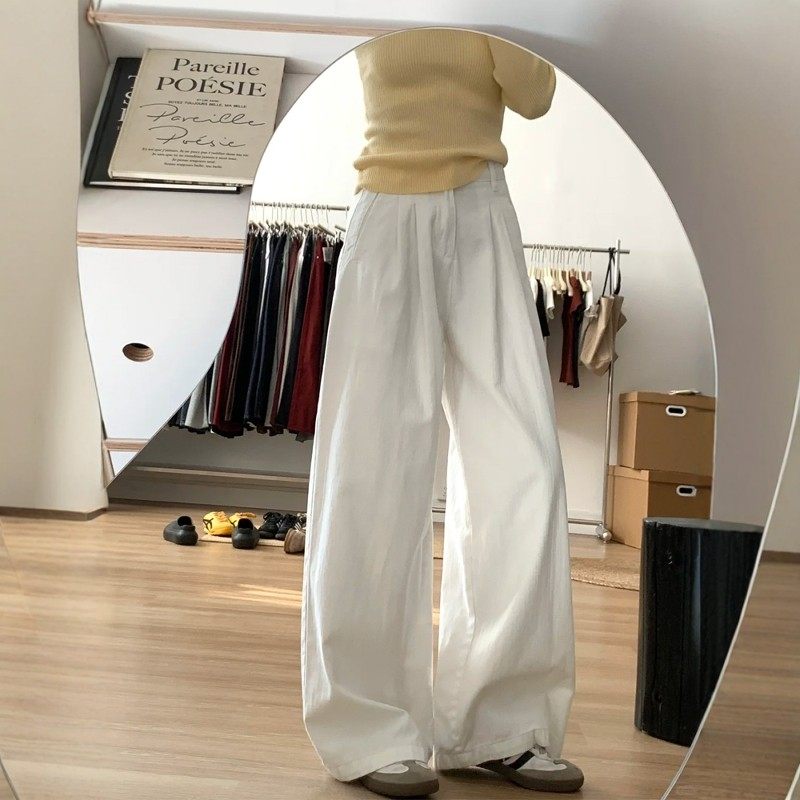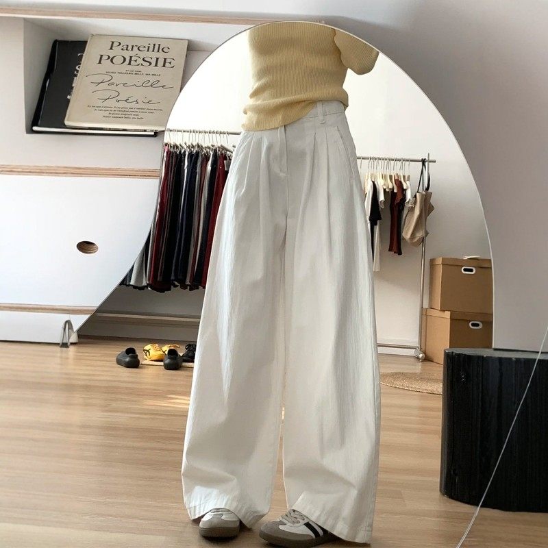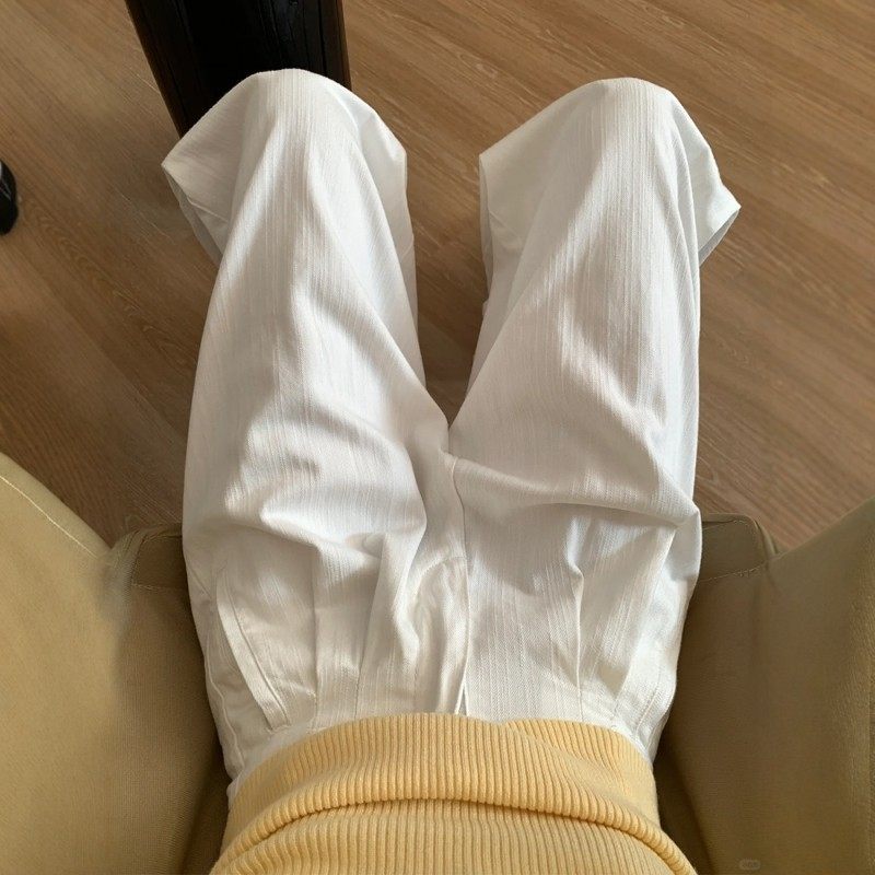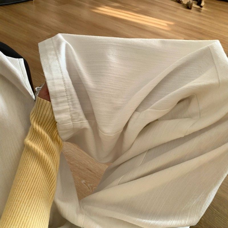 2025高腰垂感阔腿裤女装 棉麻面料白色肌理感休闲裤 大码胖MM友善