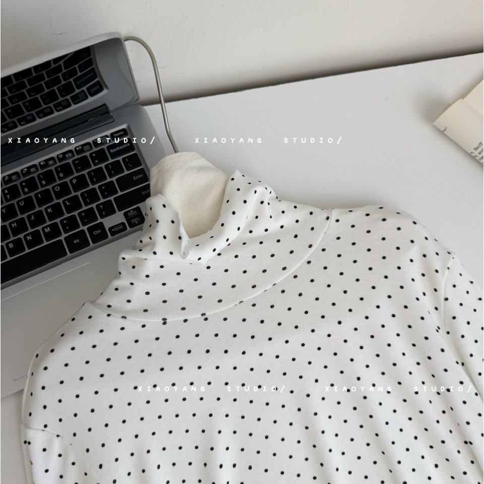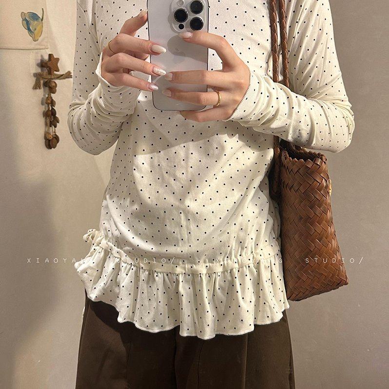 260克羊绒长袖t恤打底衫女装波点荷叶边春秋新款高领上衣