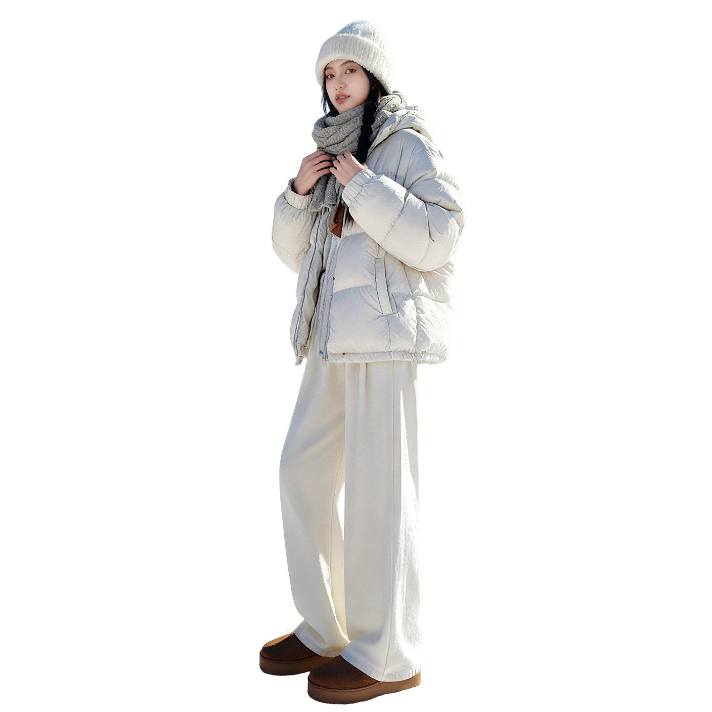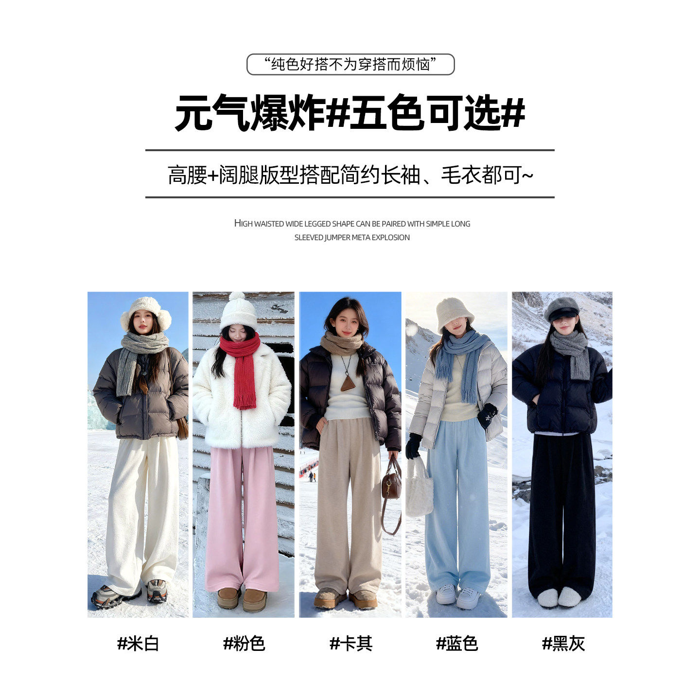 蓝色加绒阔腿裤女秋冬季东北防风防寒哈尔滨穿搭加厚保暖棉裤外穿