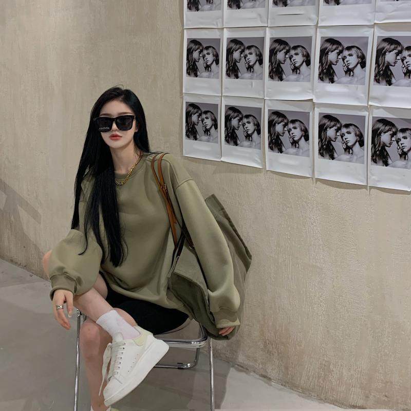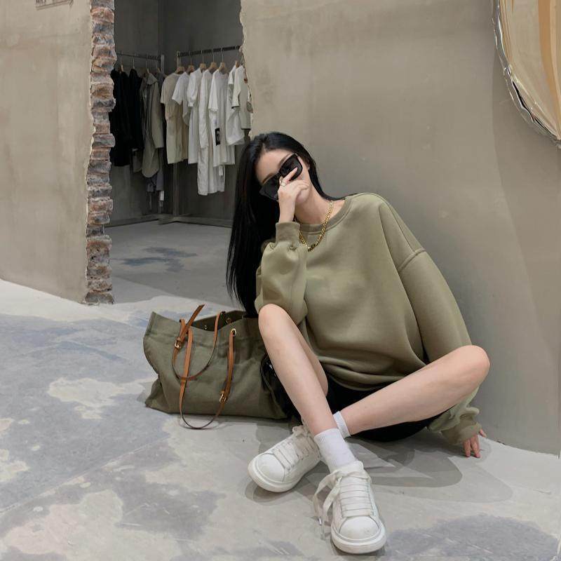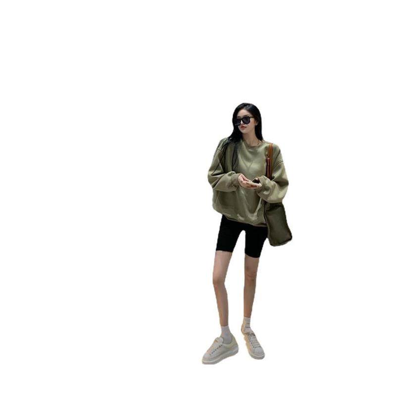 首页> 女装> 薄款卫衣女秋装2026新款欧美风长袖宽松绿色圆领学生外套上衣女潮
