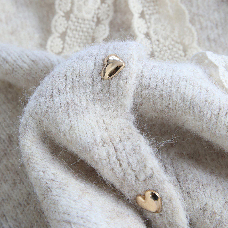 设计感蕾丝系带毛衣开 衫女2024新款秋冬季慵懒风加厚软糯针织外