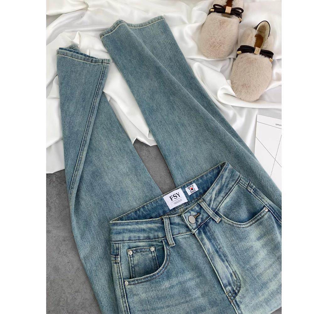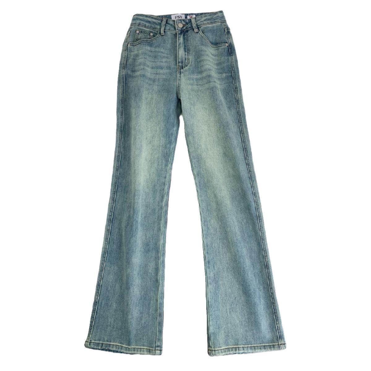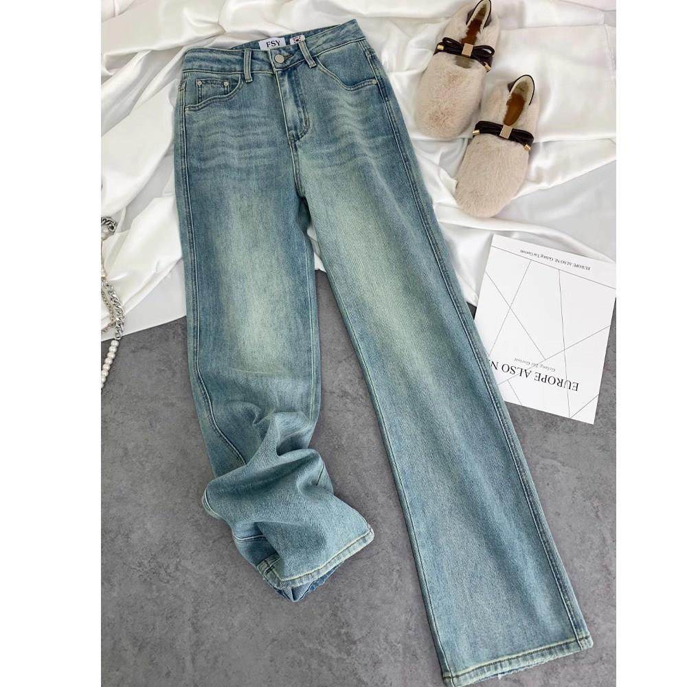 首页> 女装> 浅色高腰阔腿牛仔裤女2025新款春秋季宽松显瘦弹力字母刺绣直筒裤