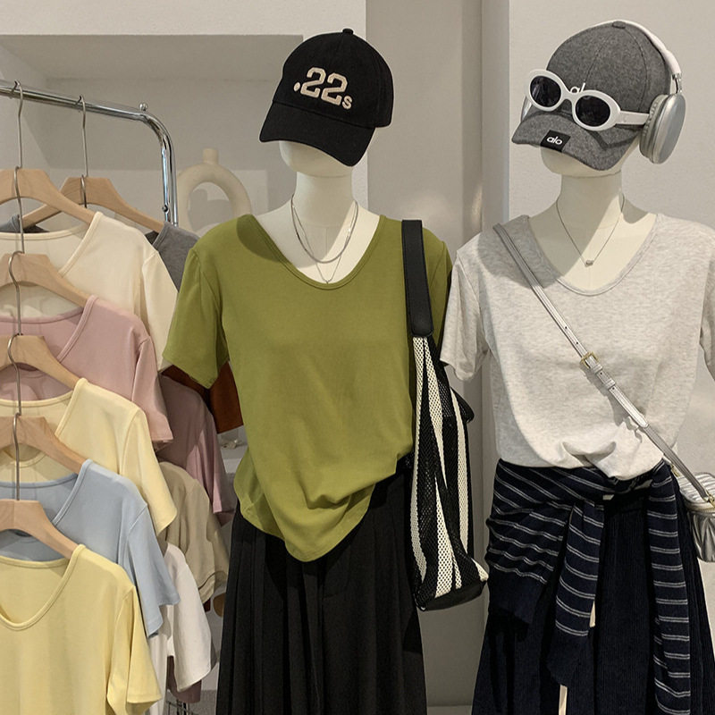 欧玛莱 桃心领莫代尔纯色短袖柔软打底衫T恤2026春夏季新品女6415