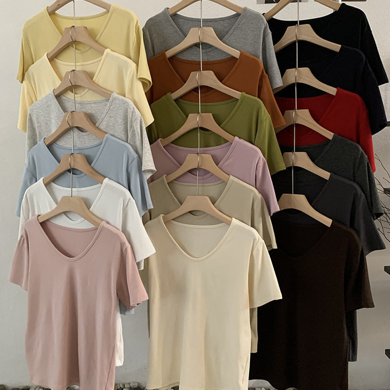 首页> 女装> 欧玛莱 桃心领莫代尔纯色短袖柔软打底衫T恤2026春夏季新品女6415