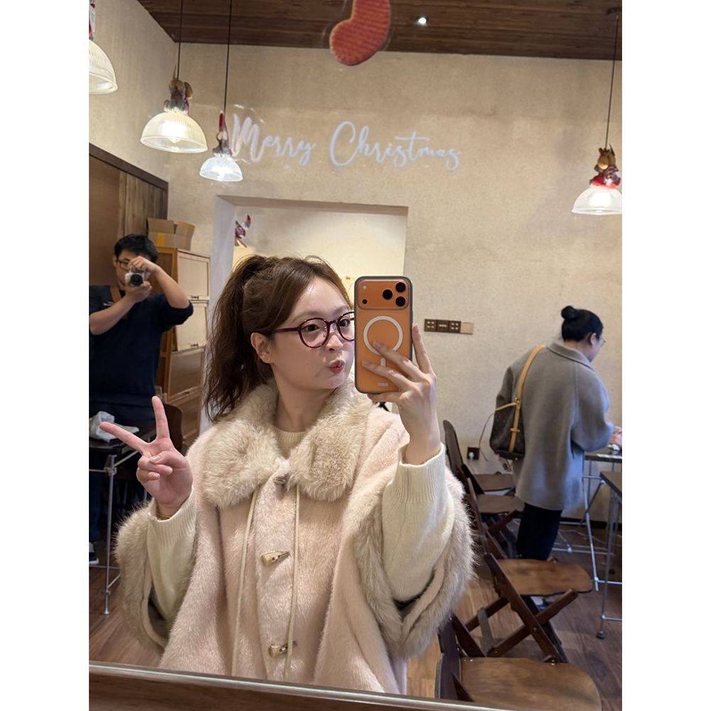 【雪国千金】冬季新款法式复古优雅气质千金风温柔粉坨色斗篷外套