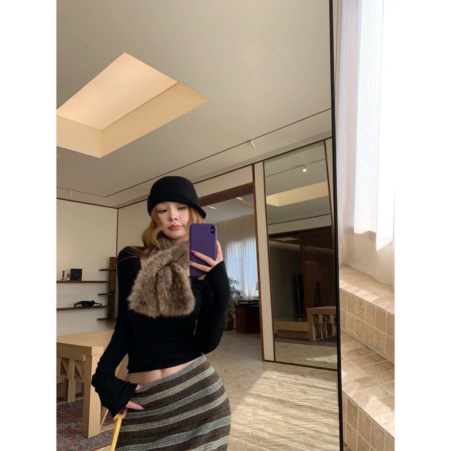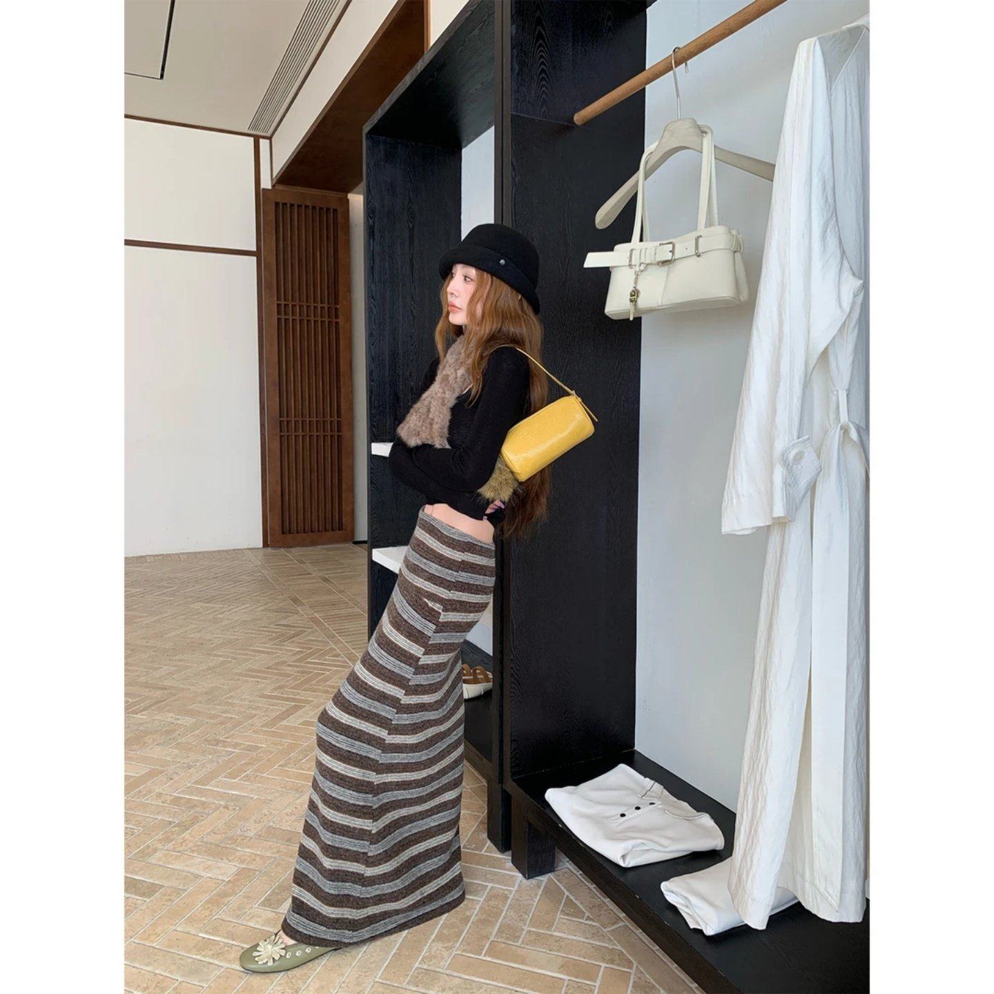 首页> 女装> 巨好看2026穿搭一整套蕾丝拼接圆领修身打底衫垂感条纹针织半身裙