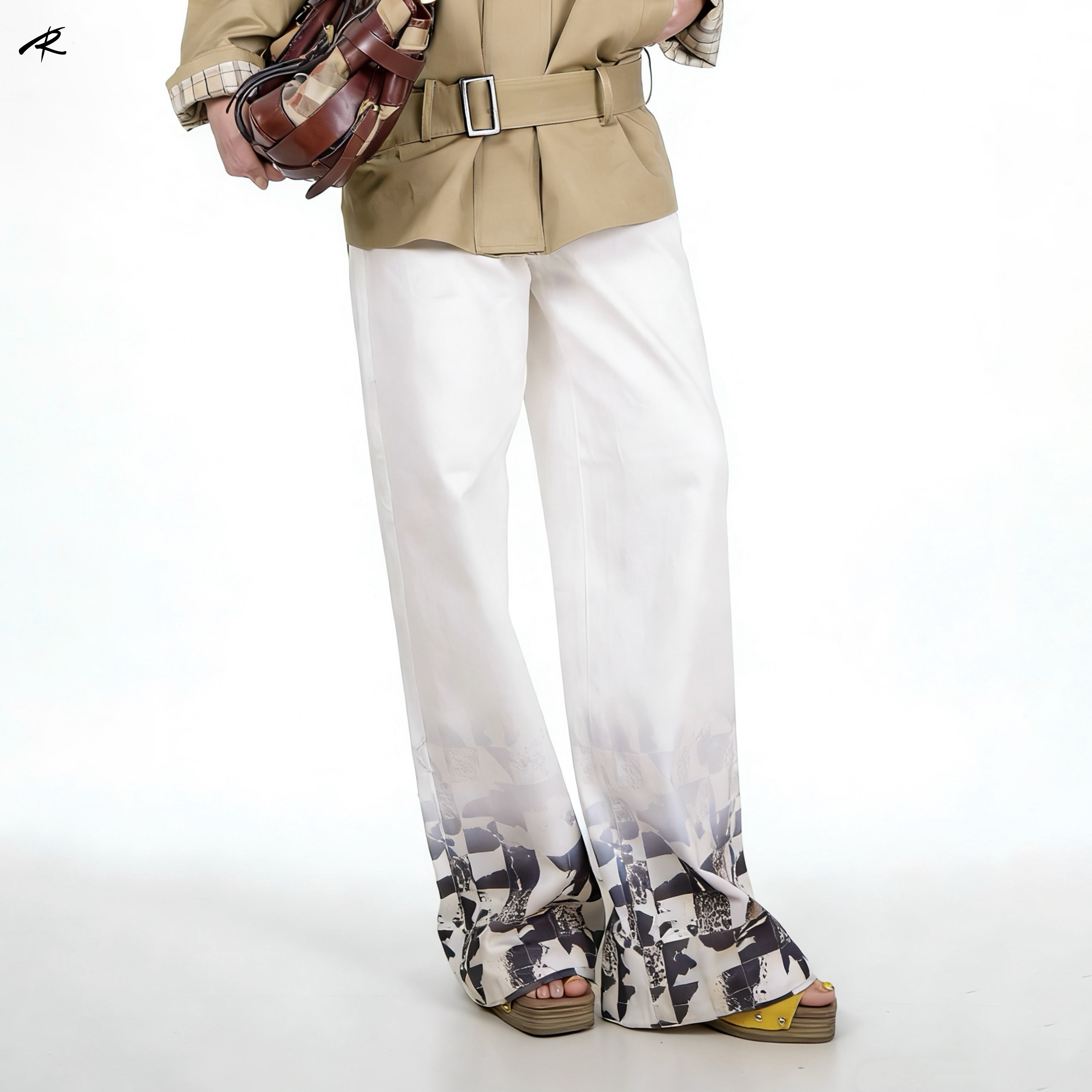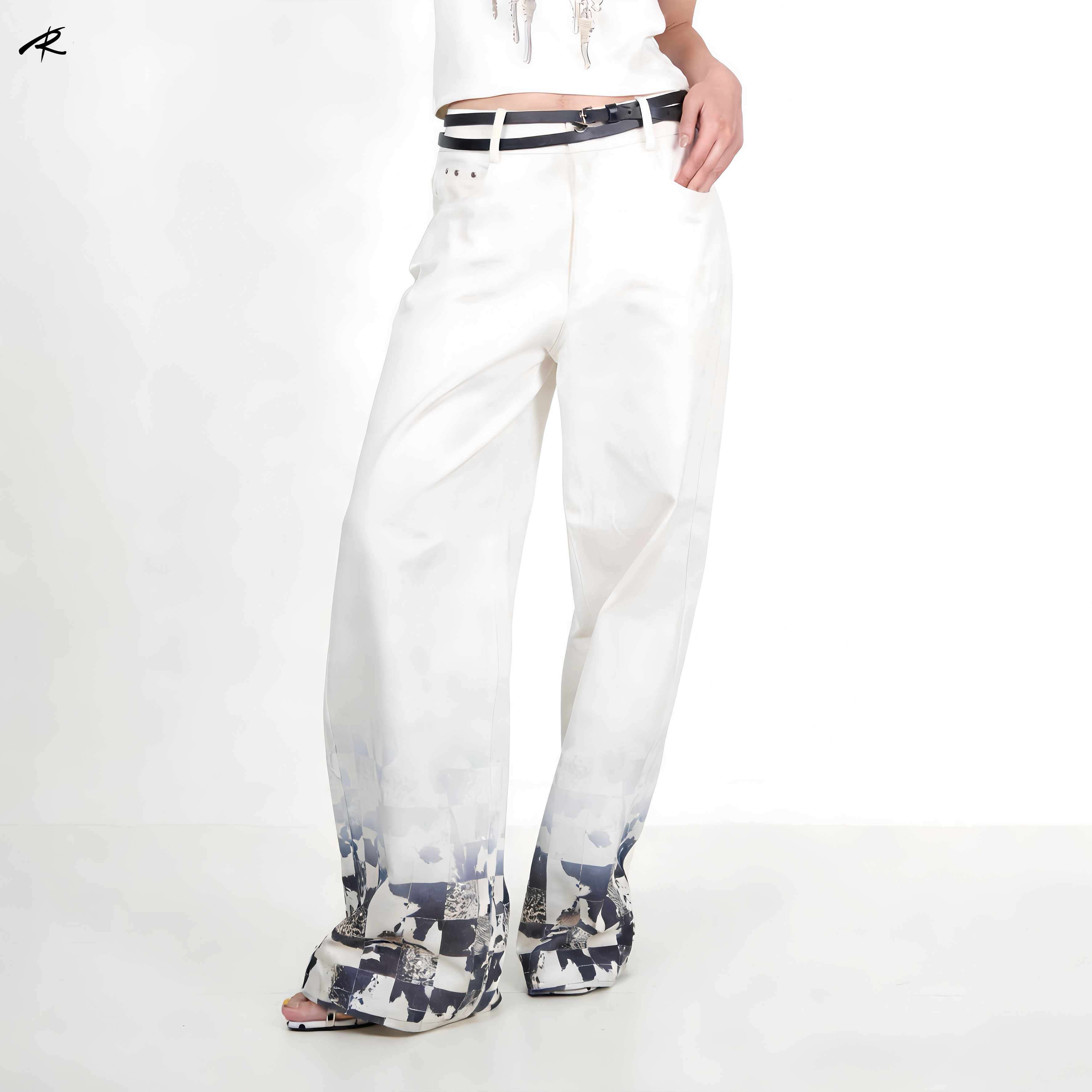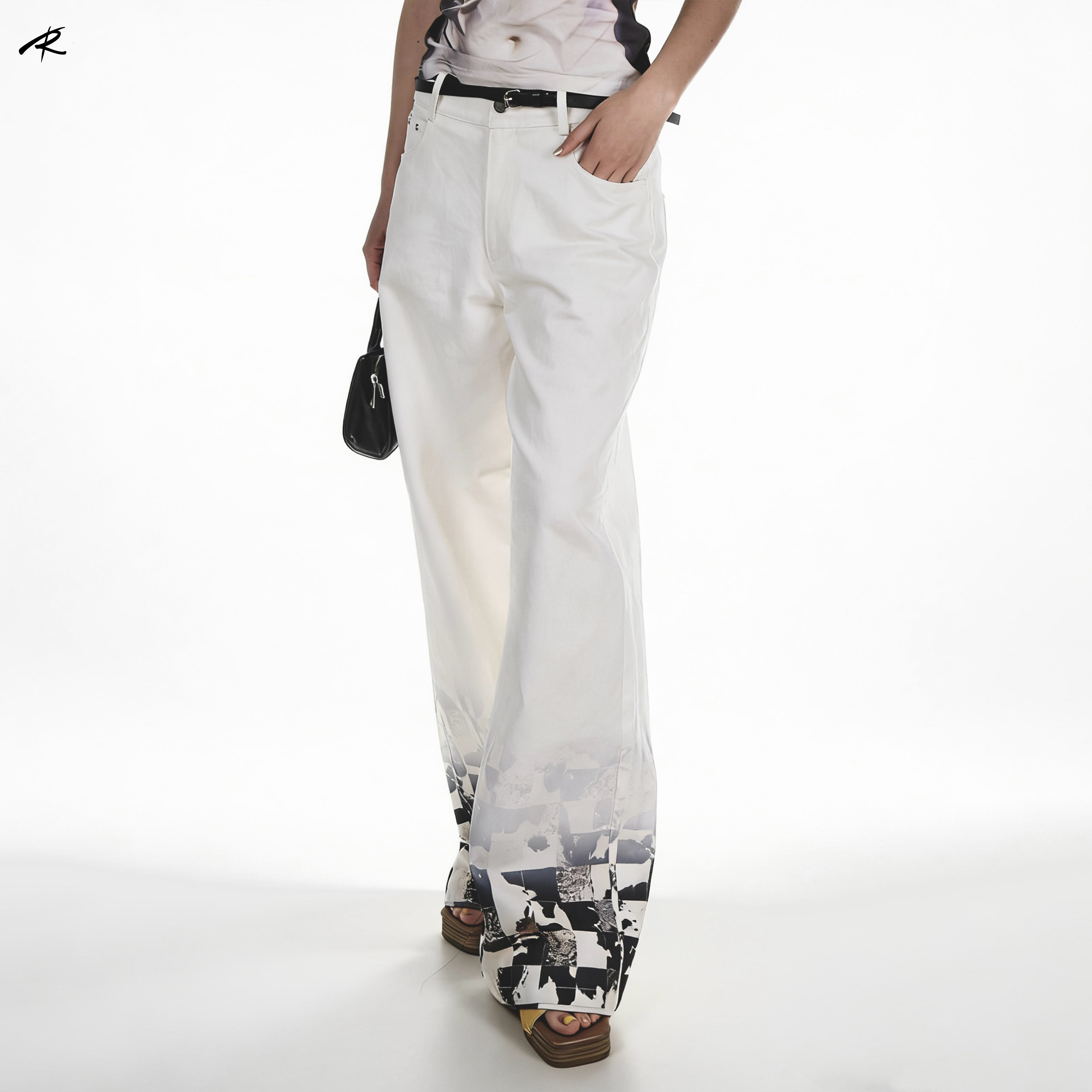 RIP THE TIE 原创白色格子印花牛仔休闲裤春夏百搭设计感直筒裤