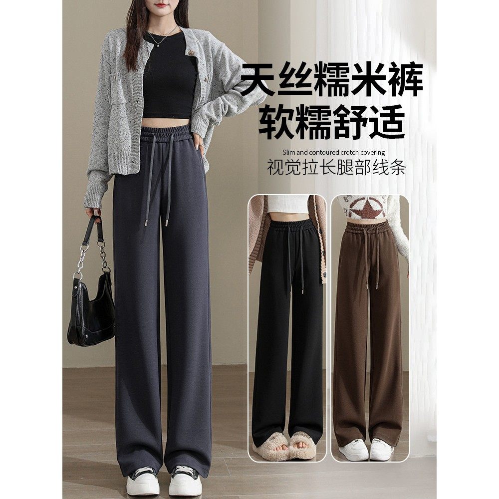 窄版阔腿裤女秋冬2025新款高腰垂感显瘦天丝糯米裤宽松直筒休闲裤
