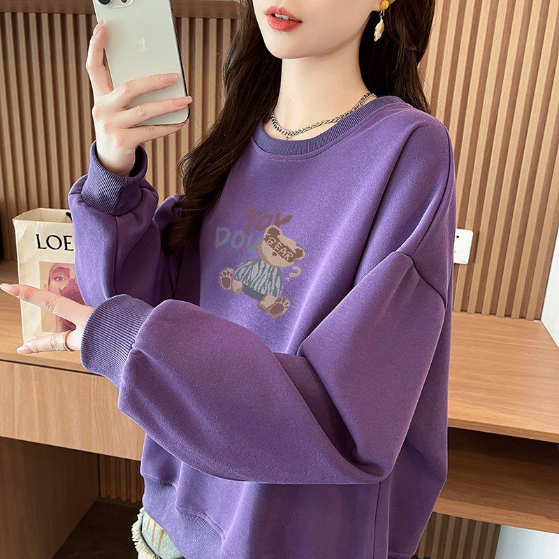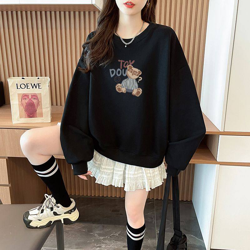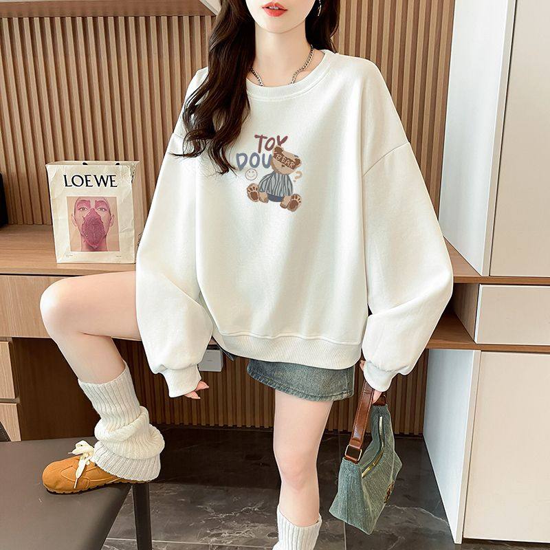 纯棉白色卫衣女2026新款春秋款宽松百搭长袖上衣短款小个子印花潮