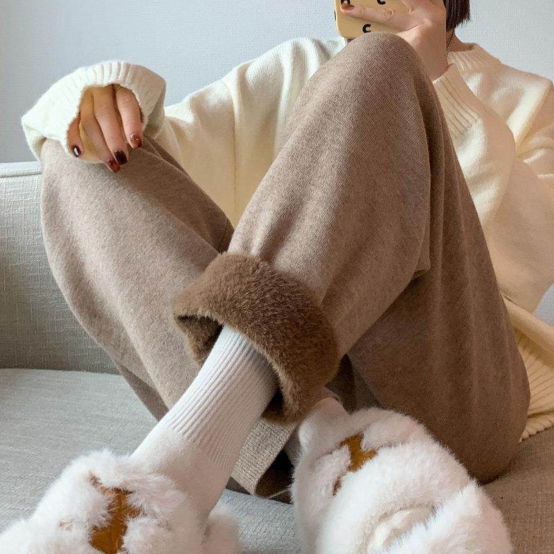 IT UNDER GARDEN加厚高腰羊毛女裤 小个子显瘦锥形秋冬棉质裤