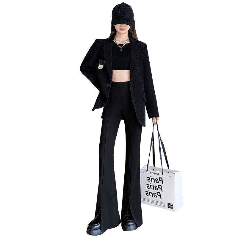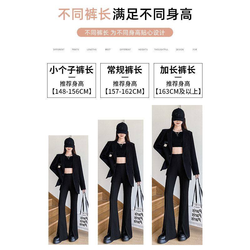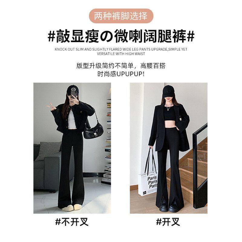 开叉微喇西装裤女2025新款秋季垂感休闲小个子黑色显瘦马蹄喇叭裤