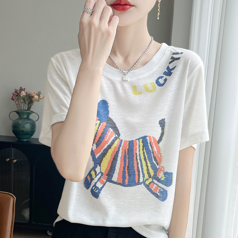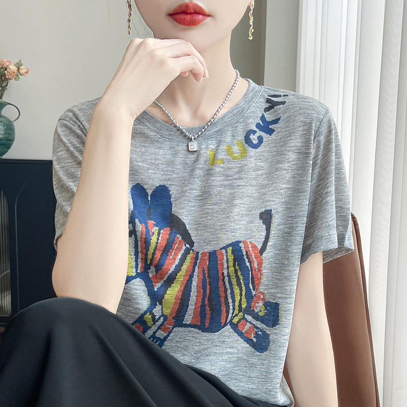 2025年夏季短袖常规宽松型通勤幸运斑马清爽透气时髦减龄