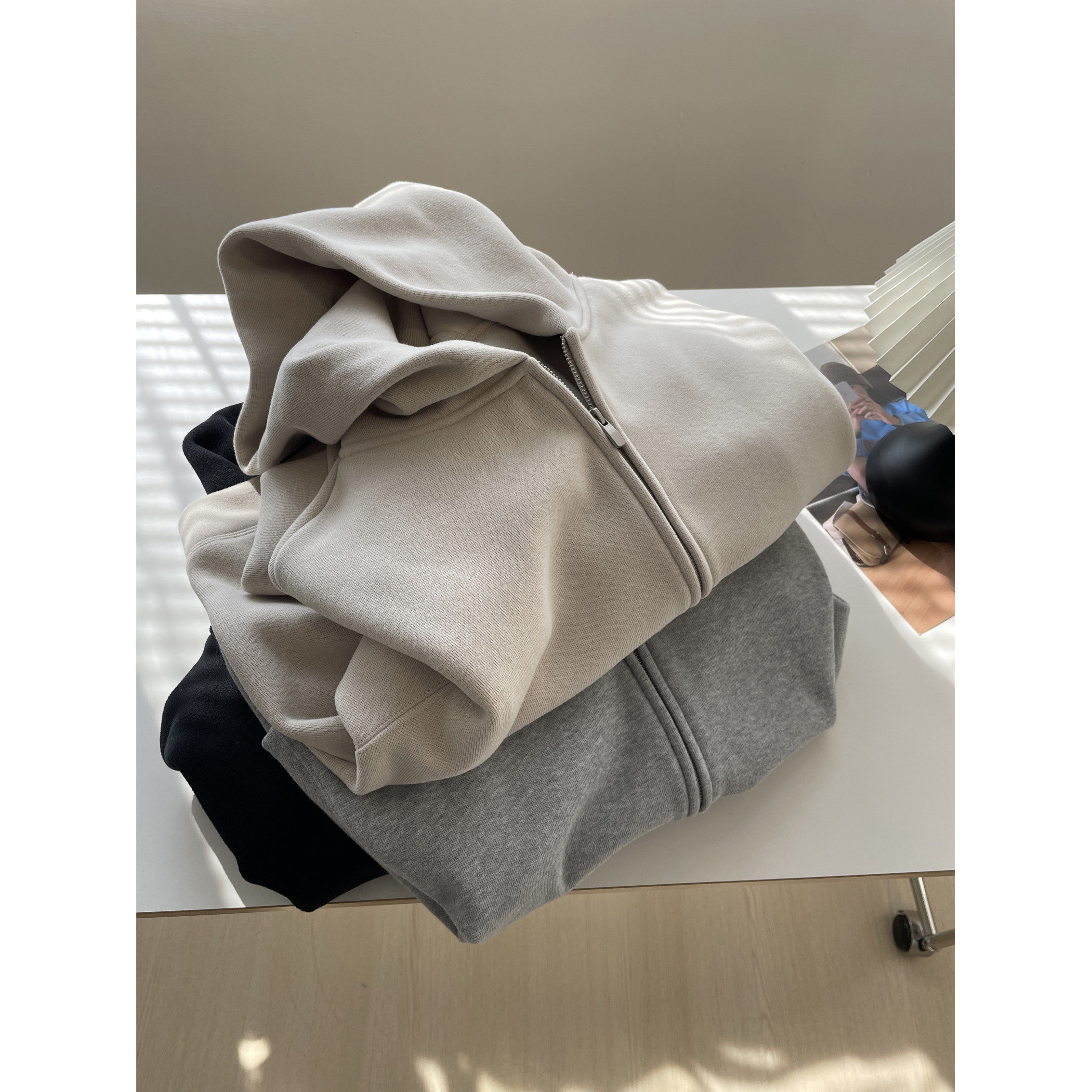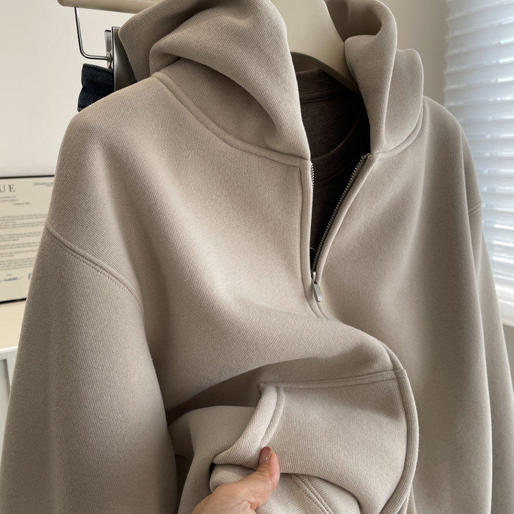 简约休闲加绒连帽休闲开衫卫衣女!秋冬百搭加厚双头拉链保暖外套