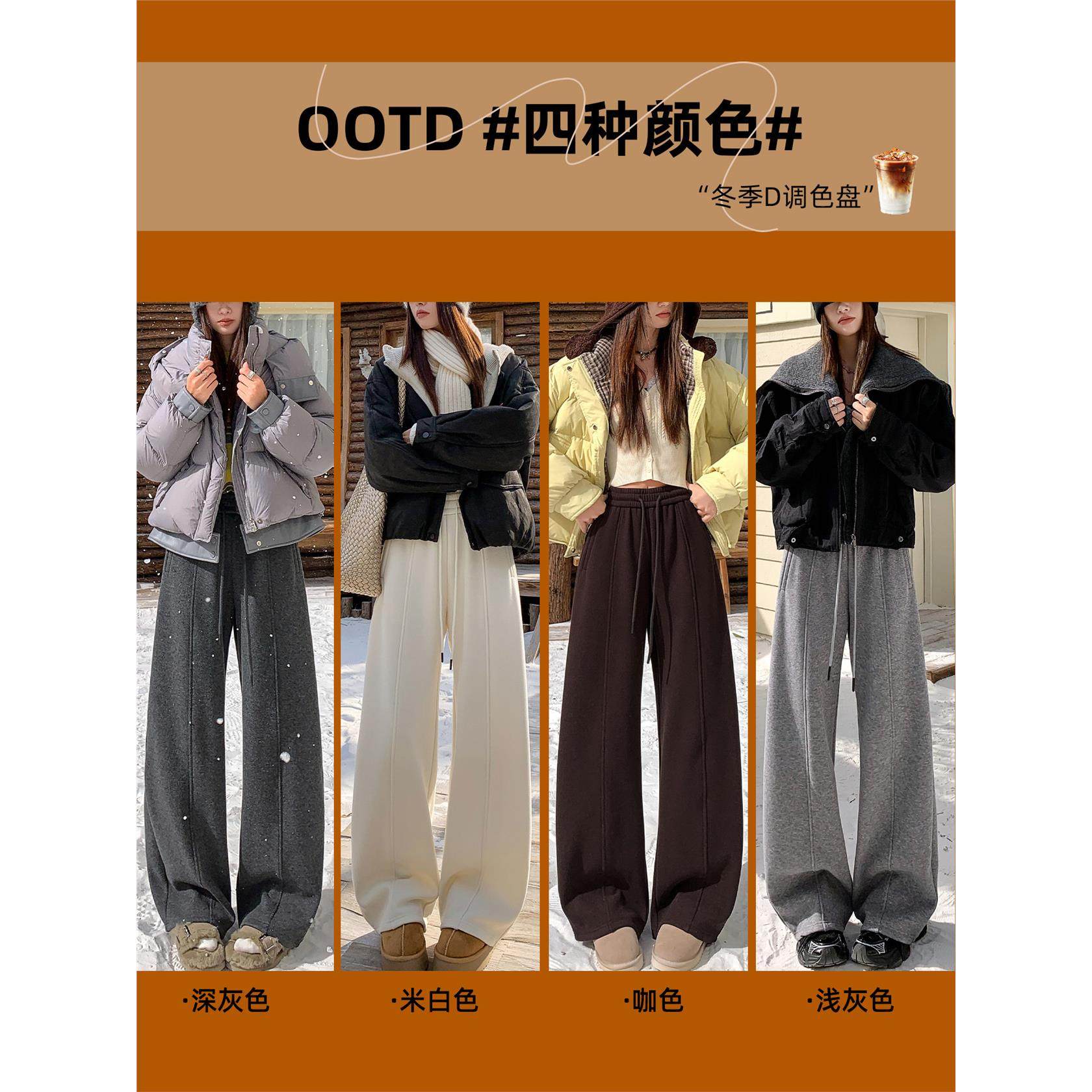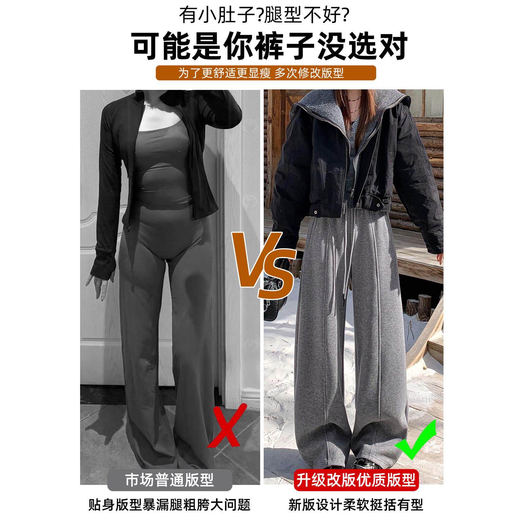 加绒窄版阔腿裤女冬季2025新款加厚灰色气球弯刀裤今年流行梧桐裤