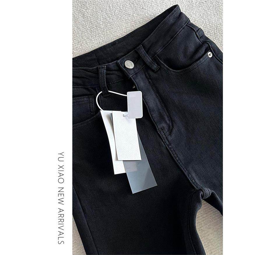 黑色弹力微喇牛仔裤女秋季新款大码显瘦胖mm梨形身材喇叭马蹄裤子