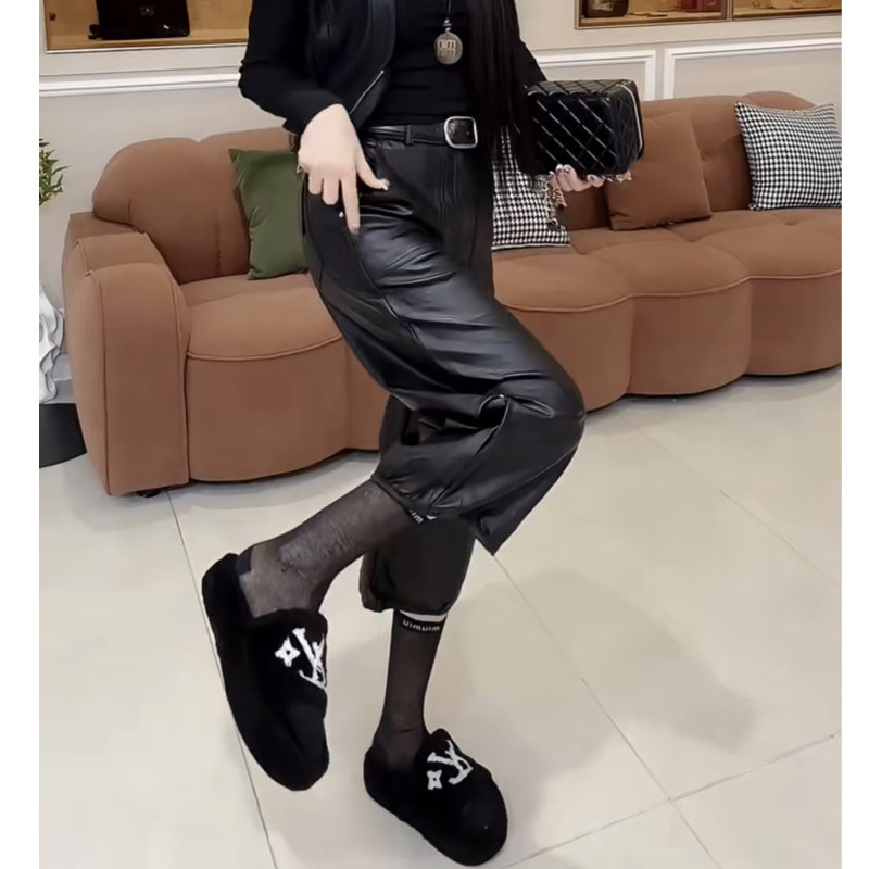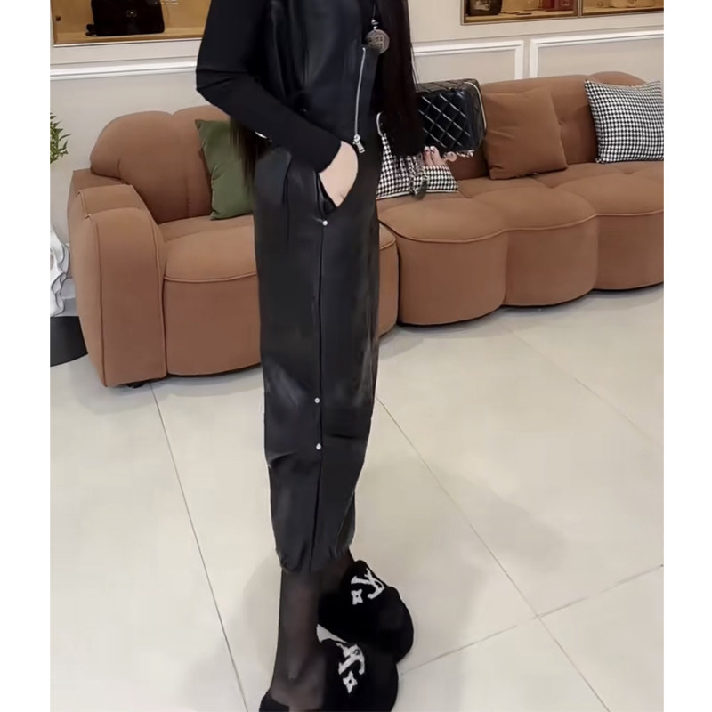 2025年秋冬新款铆钉休闲pu皮裤女时尚宽松百搭显瘦欧货直筒七分裤