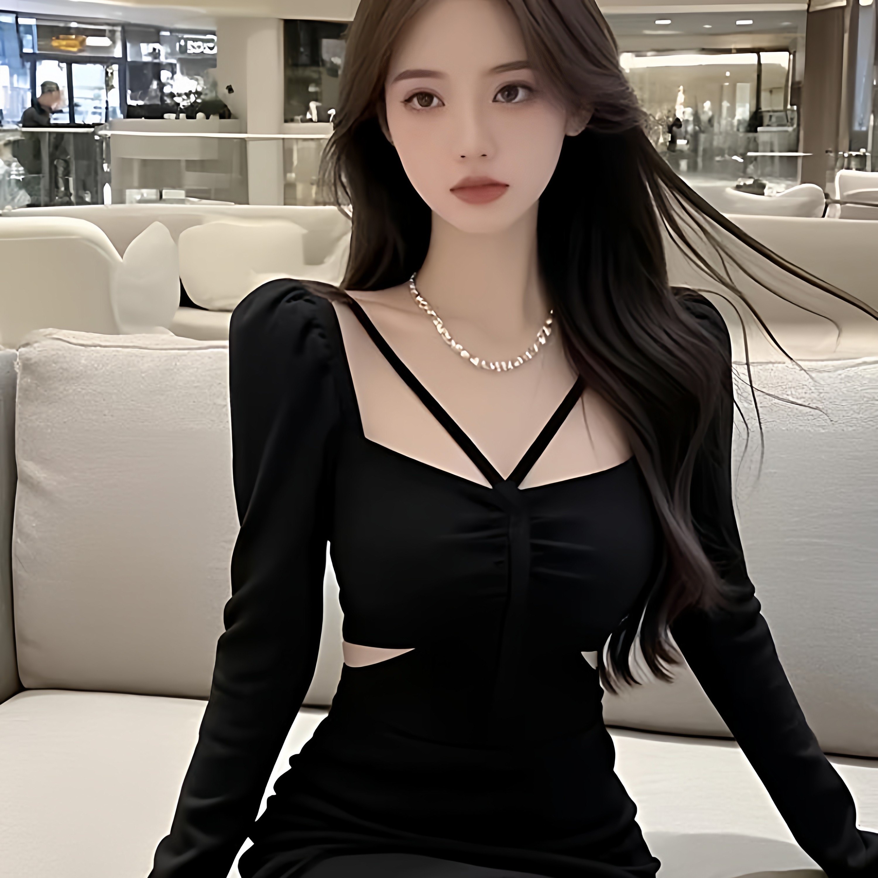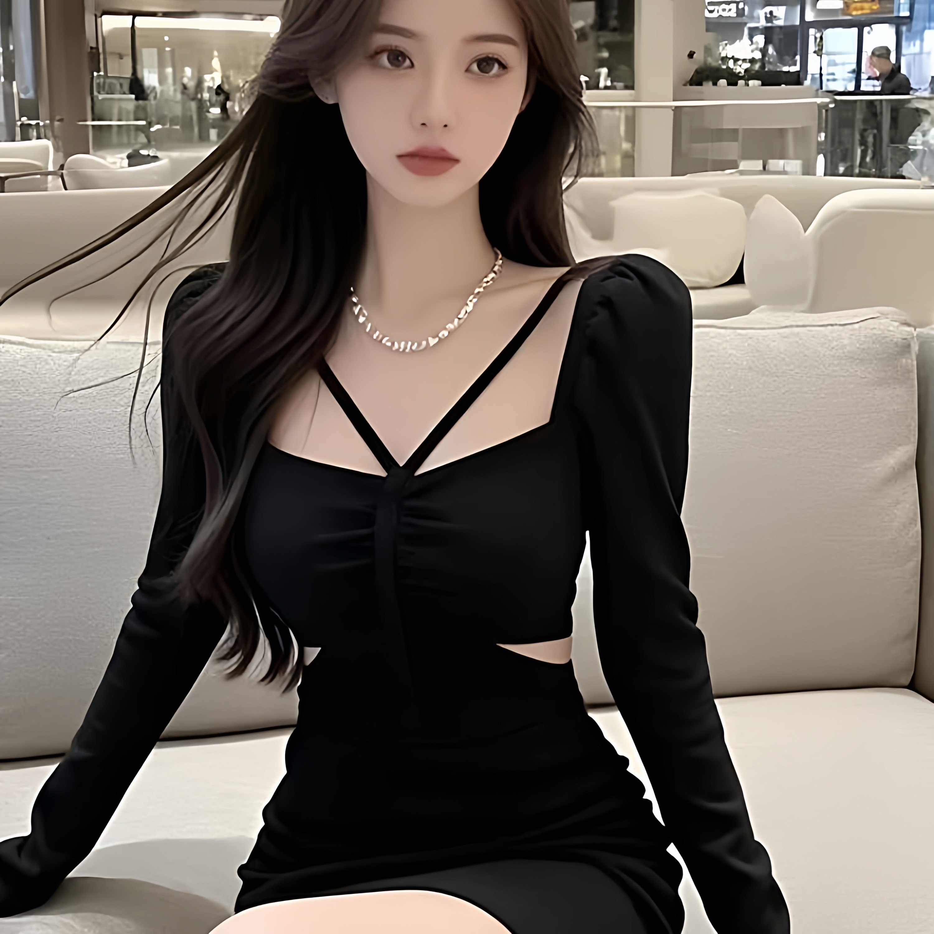 首页> 女装> 辣妹风别致设计黑色炸街连衣裙2025年秋季新款包臀裙