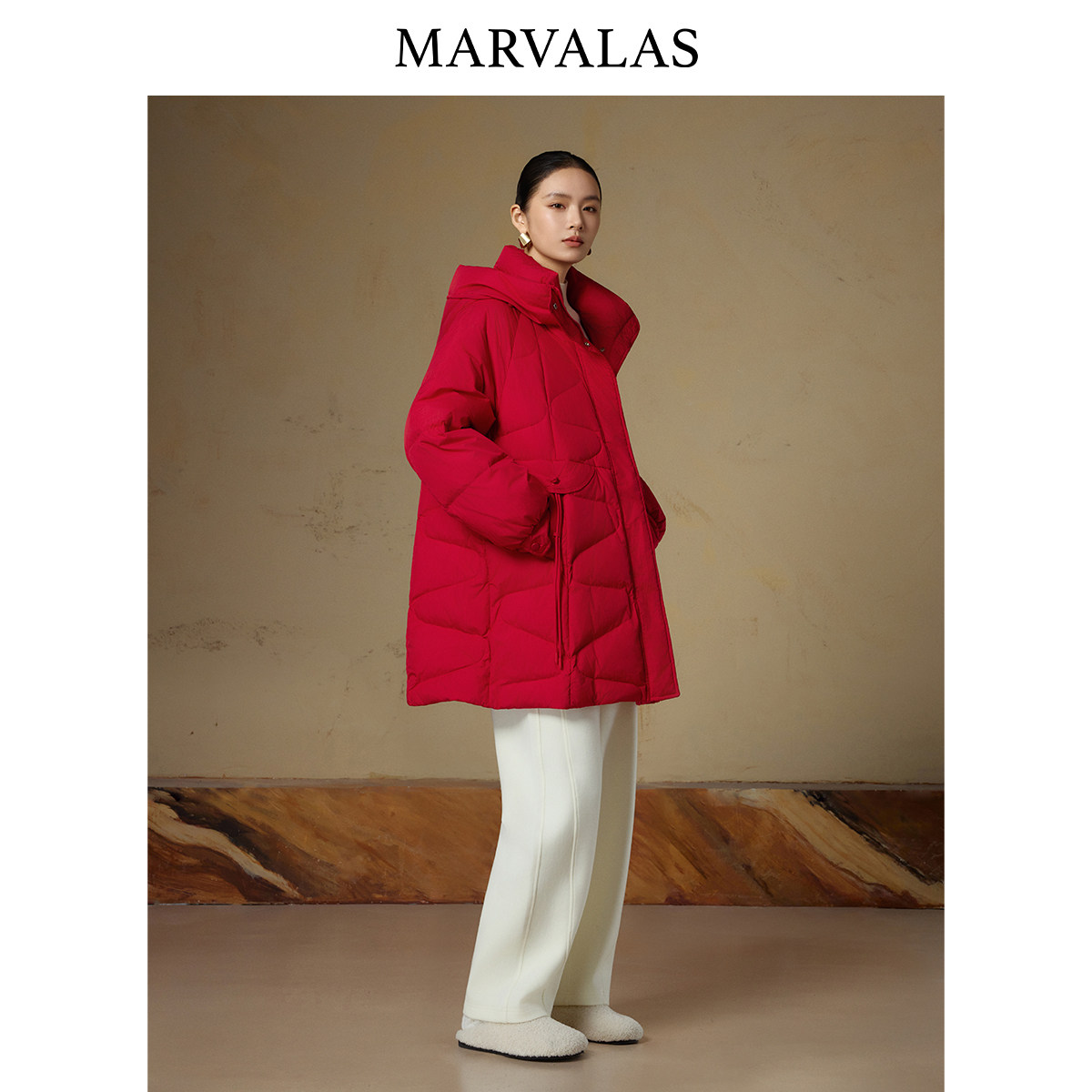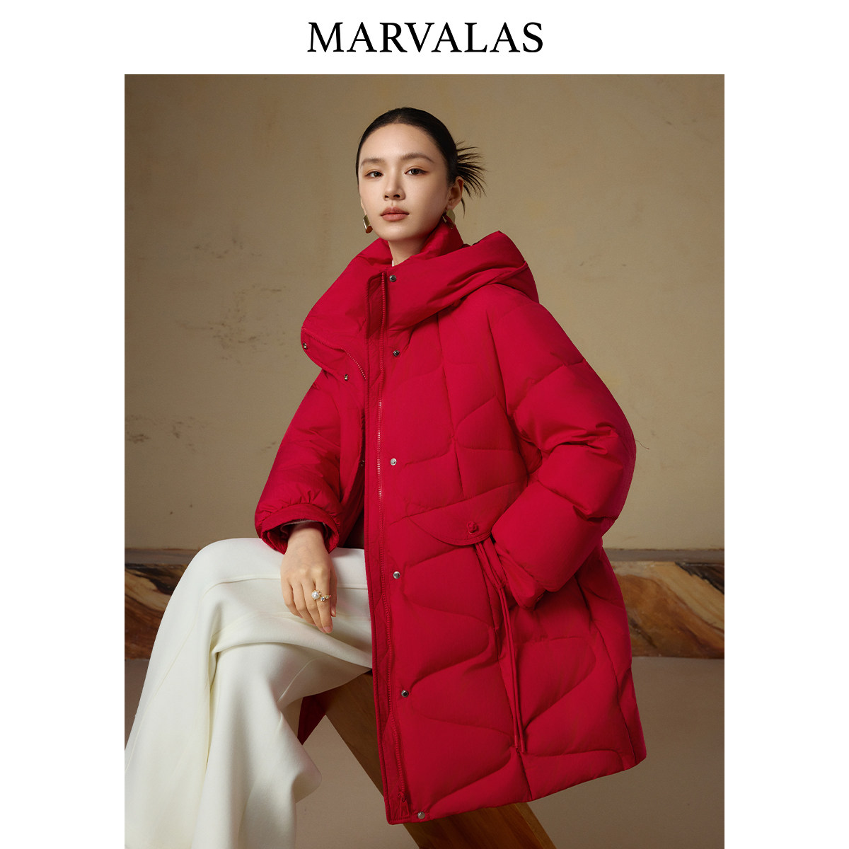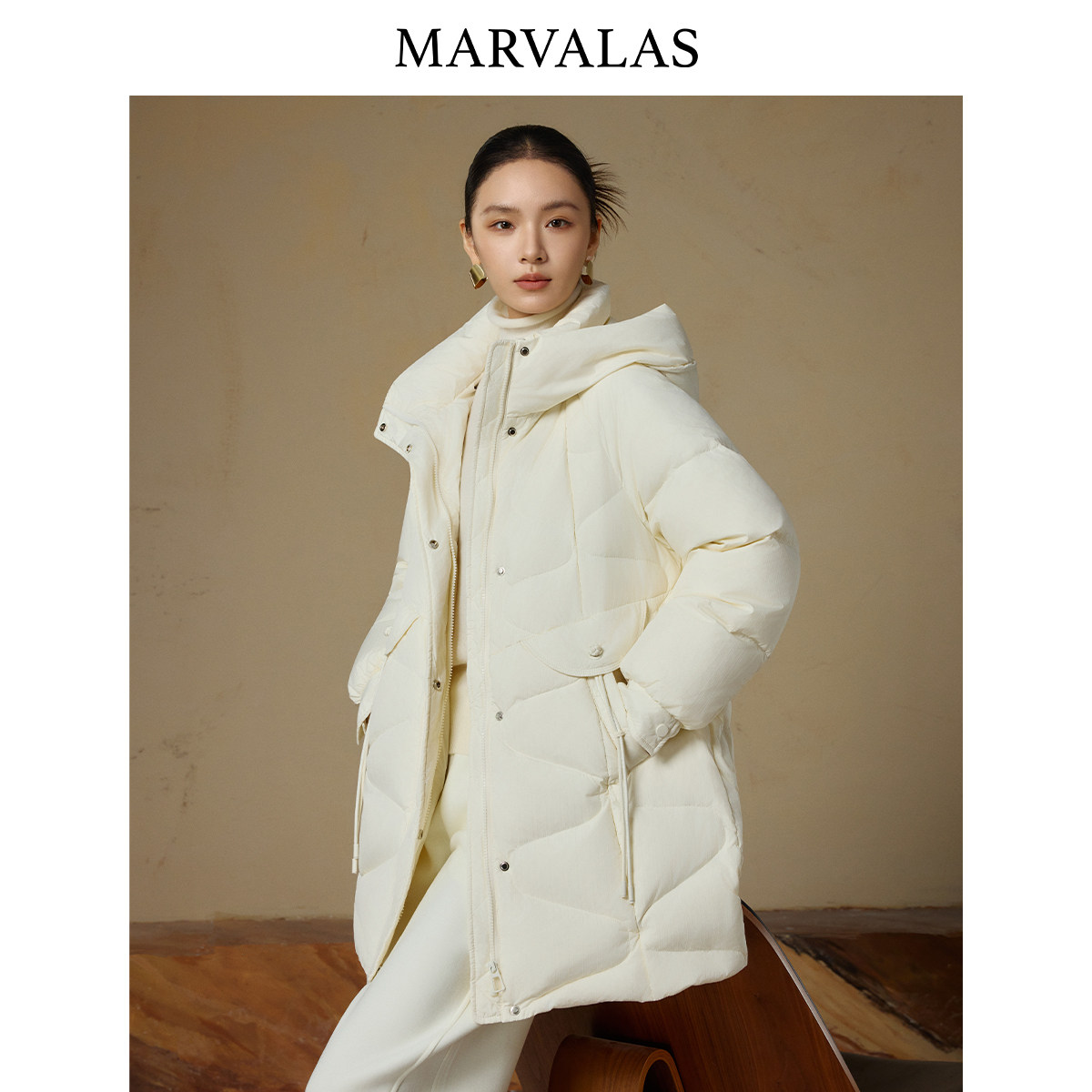 【呼呼严选粉丝专属】曼德诗中长款羽绒服女2025冬季新款时尚连帽