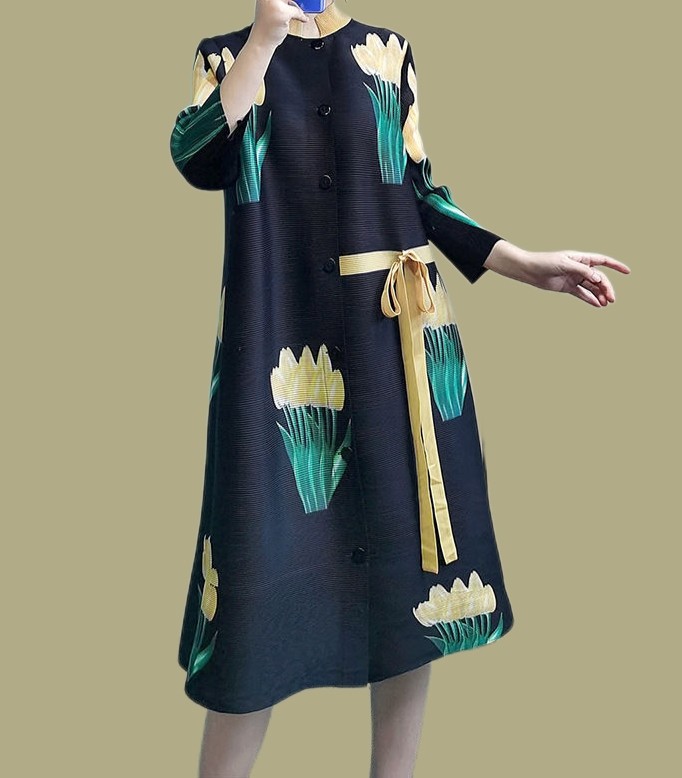 首页> 女装> 三宅系列褶皱时尚2025新款风衣立领单排扣气质优雅外套印花外套