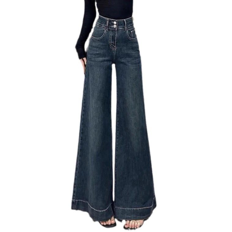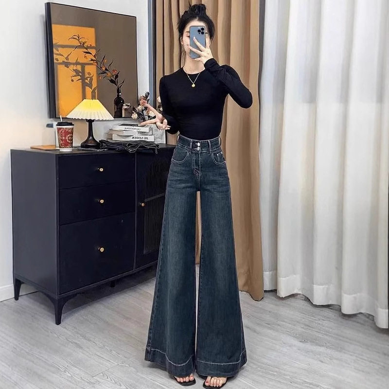 超阔腿喇叭牛仔裤女小个子新款高腰宽松遮肉显高百搭大摆拖地裤子