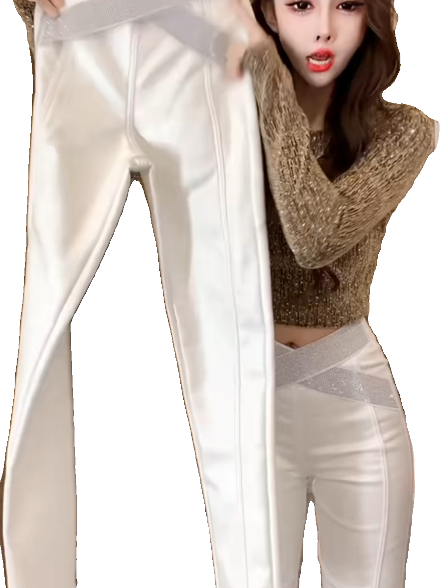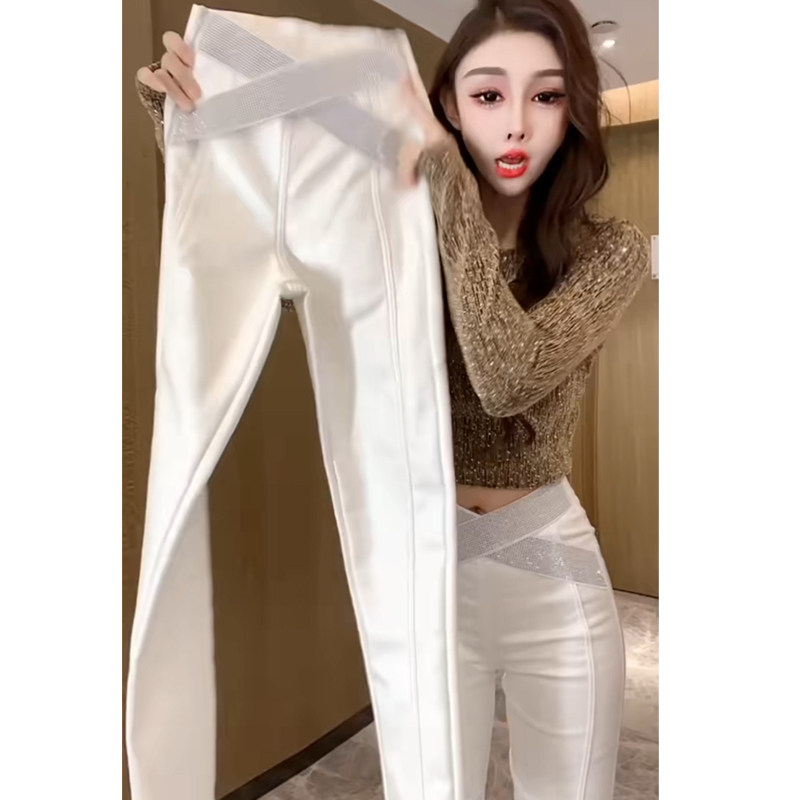 2025秋冬新款加绒涂层重工修身高腰弹力铅笔显瘦小脚外穿打底裤女